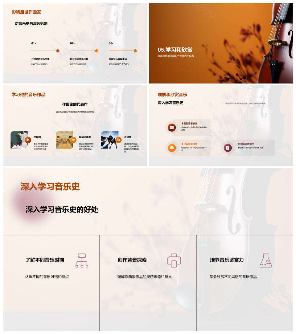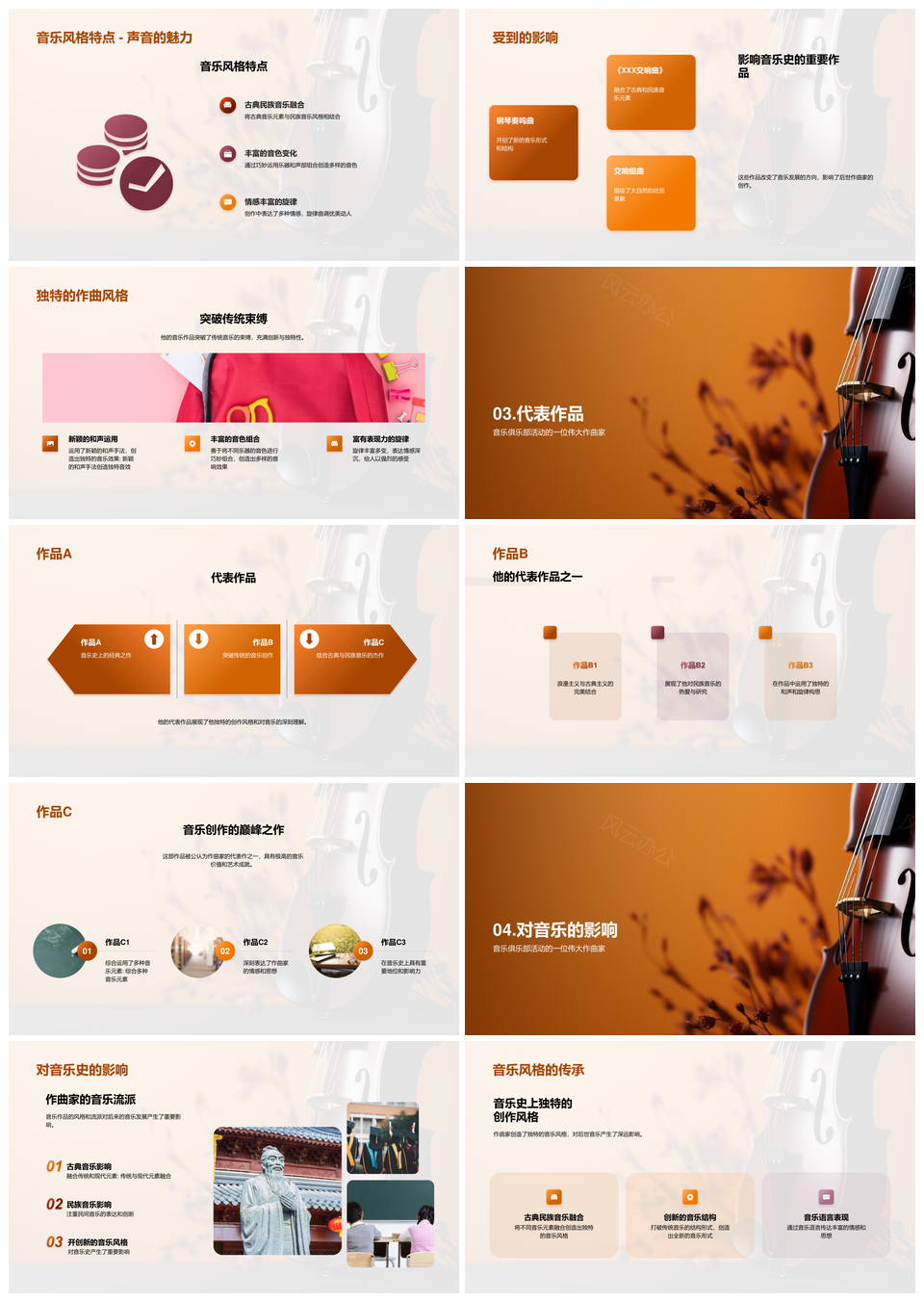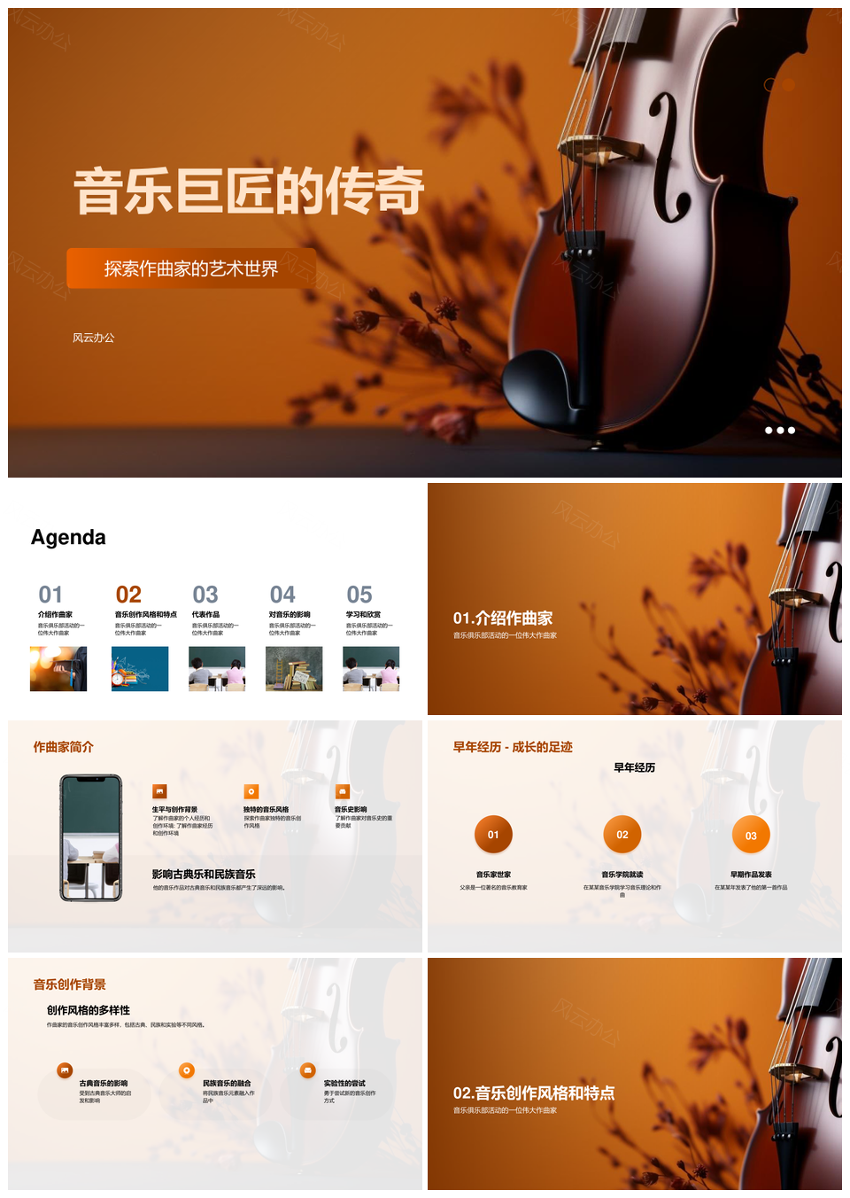 风云办公提供的音乐巨匠音符谱写传世史话PPT模板,下载格式为pptx,一共23页,作品中文字及图均可以修改和编辑,图片更改请在作品中右键图片并更换,文字修改请直接点击文字进行修改。