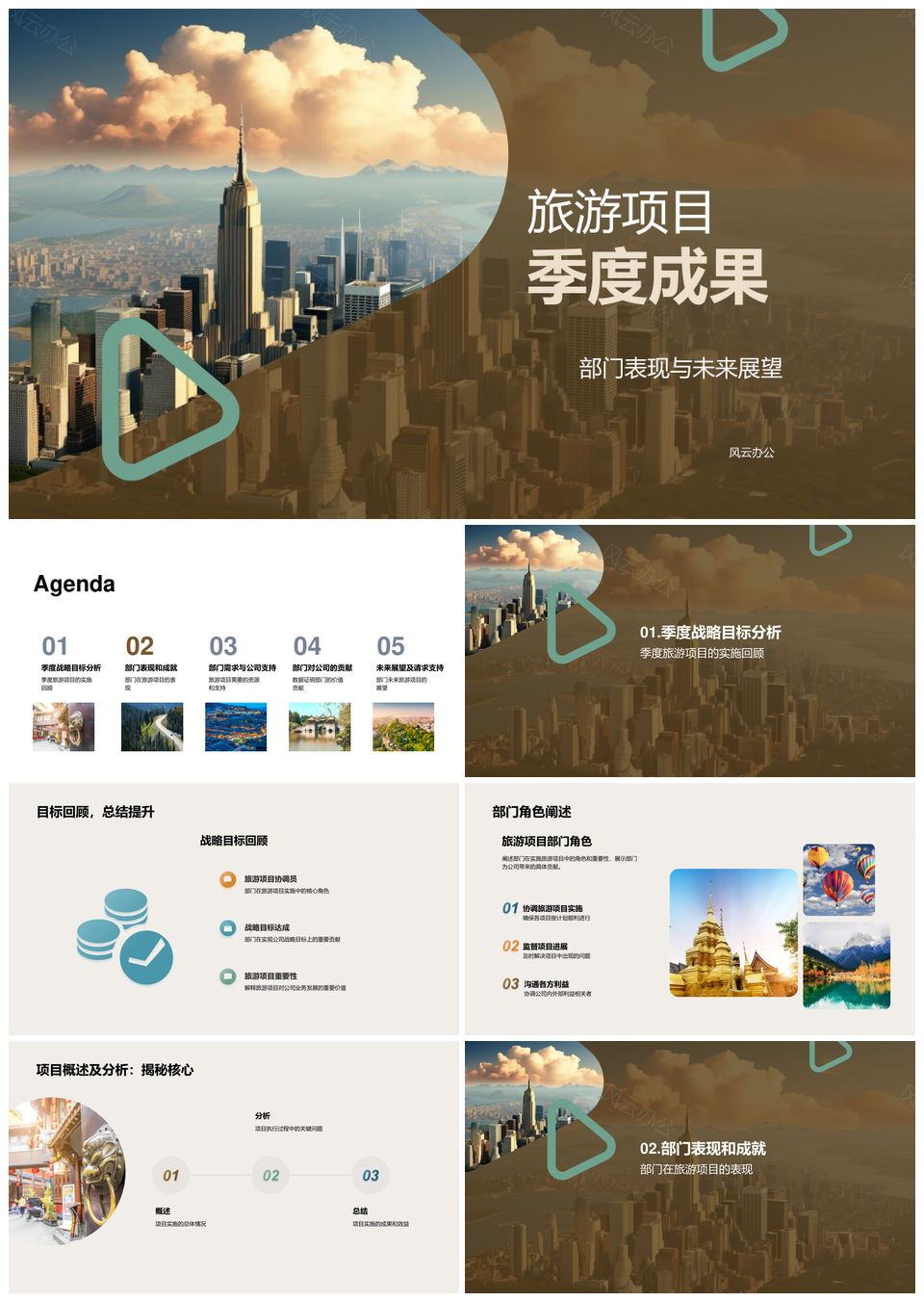 旅游项目季度成果部门战略实施高层资源地标展望PPT模板