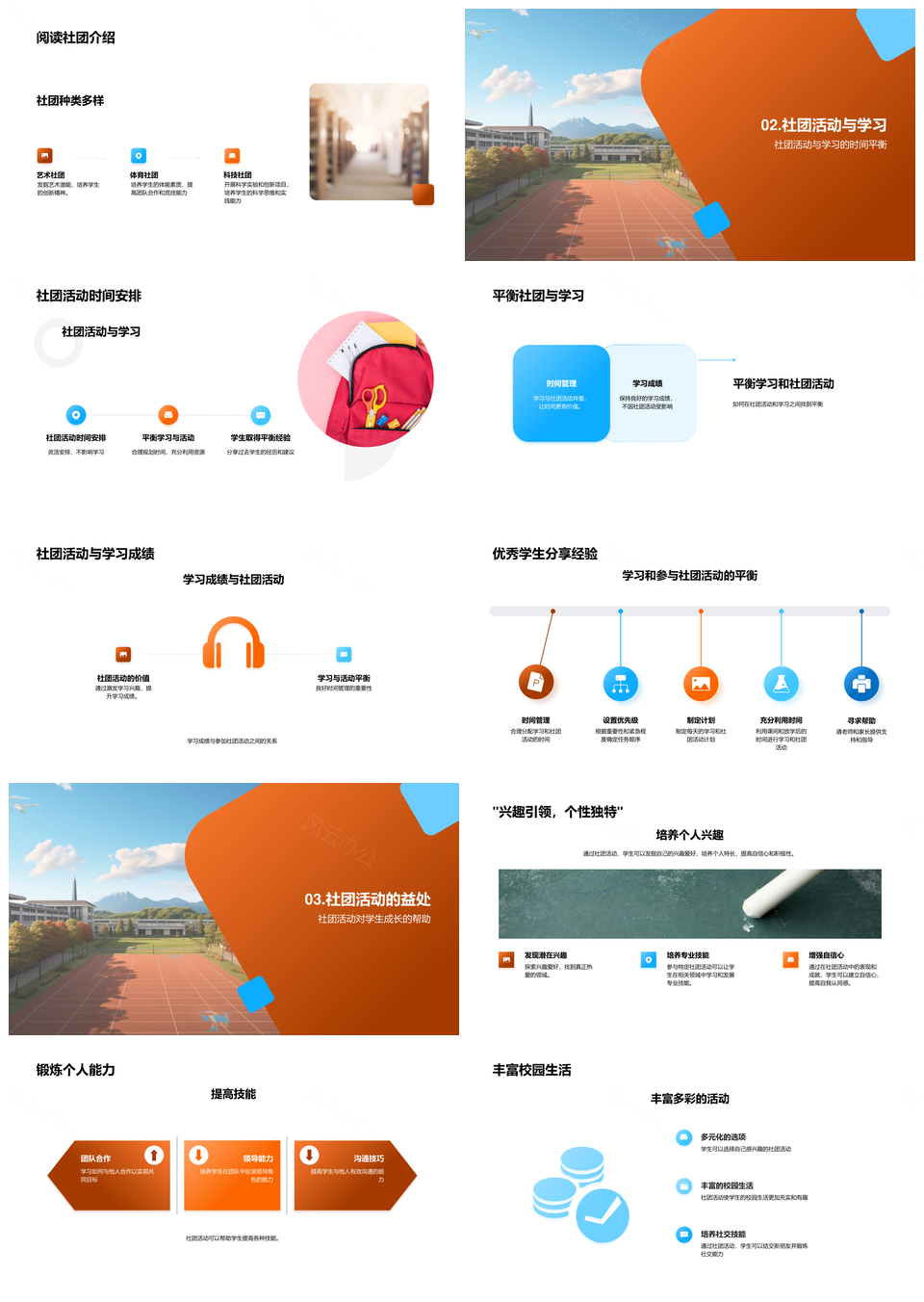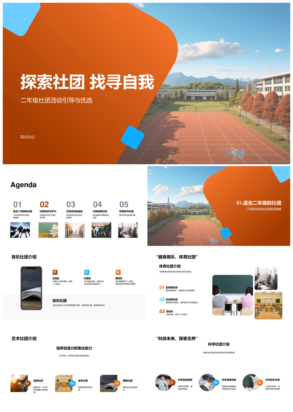 风云办公提供的二年级社团活动平衡学习与兴趣成长PPT模板,下载格式为pptx,一共29页,作品中文字及图均可以修改和编辑,图片更改请在作品中右键图片并更换,文字修改请直接点击文字进行修改。