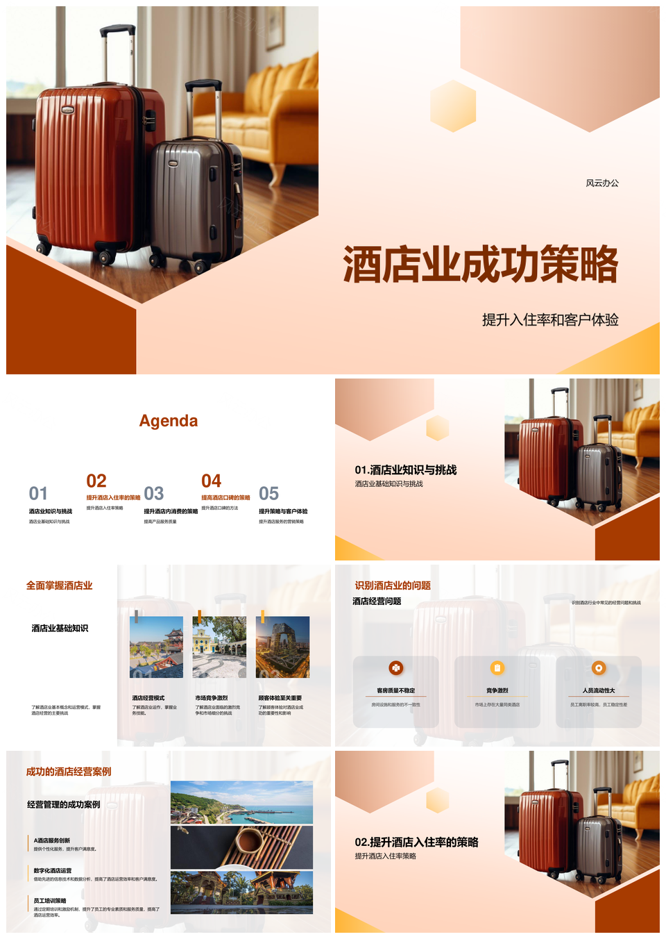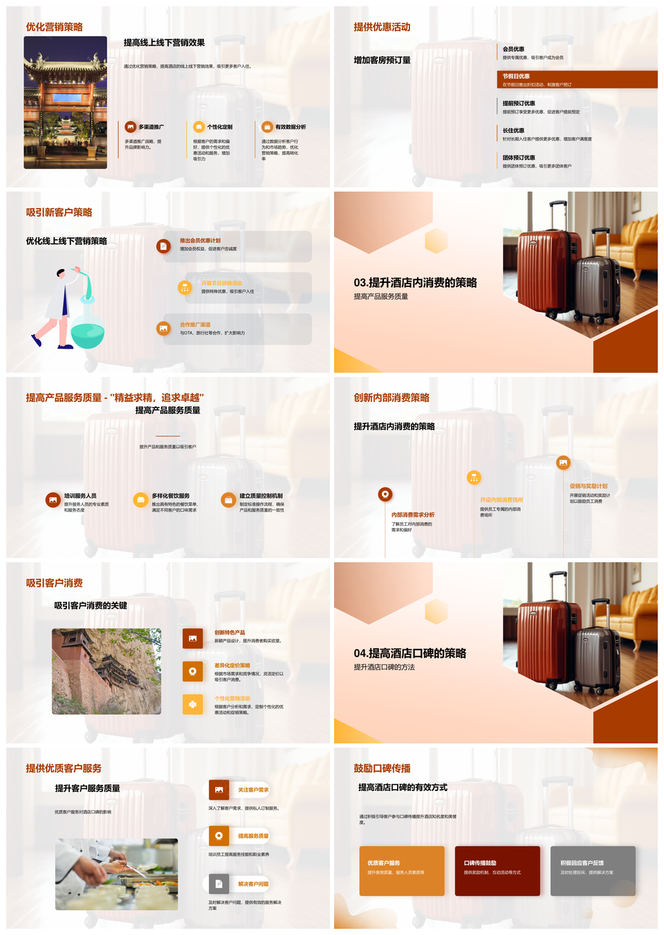 这是一张酒店业提升入住率优化营销客户体验策略PPT模板,包含酒店业、提升、入住率、优化、营销、客户、体验、策略等主题内容,也可用作酒店业提升入住率优化营销、酒店业提升入住率优化、提升入住率优化营销、优化营销客户体验策略、酒店业优化营销客户体验、酒店业提升入住率、提升入住率优化、入住率优化营销、优化营销客户体验、营销客户体验策略、酒店业客户体验策略、优化客户体验策略、酒店业优化营销、优化营销策略、营销策略等PPT场景使用。 风云办公提供的酒店业提升入住率优化营销客户体验策略PPT模板,下载格式为pptx,一共23页,作品中文字及图均可以修改和编辑,图片更改请在作品中右键图片并更换,文字修改请直接点击文字进行修改。