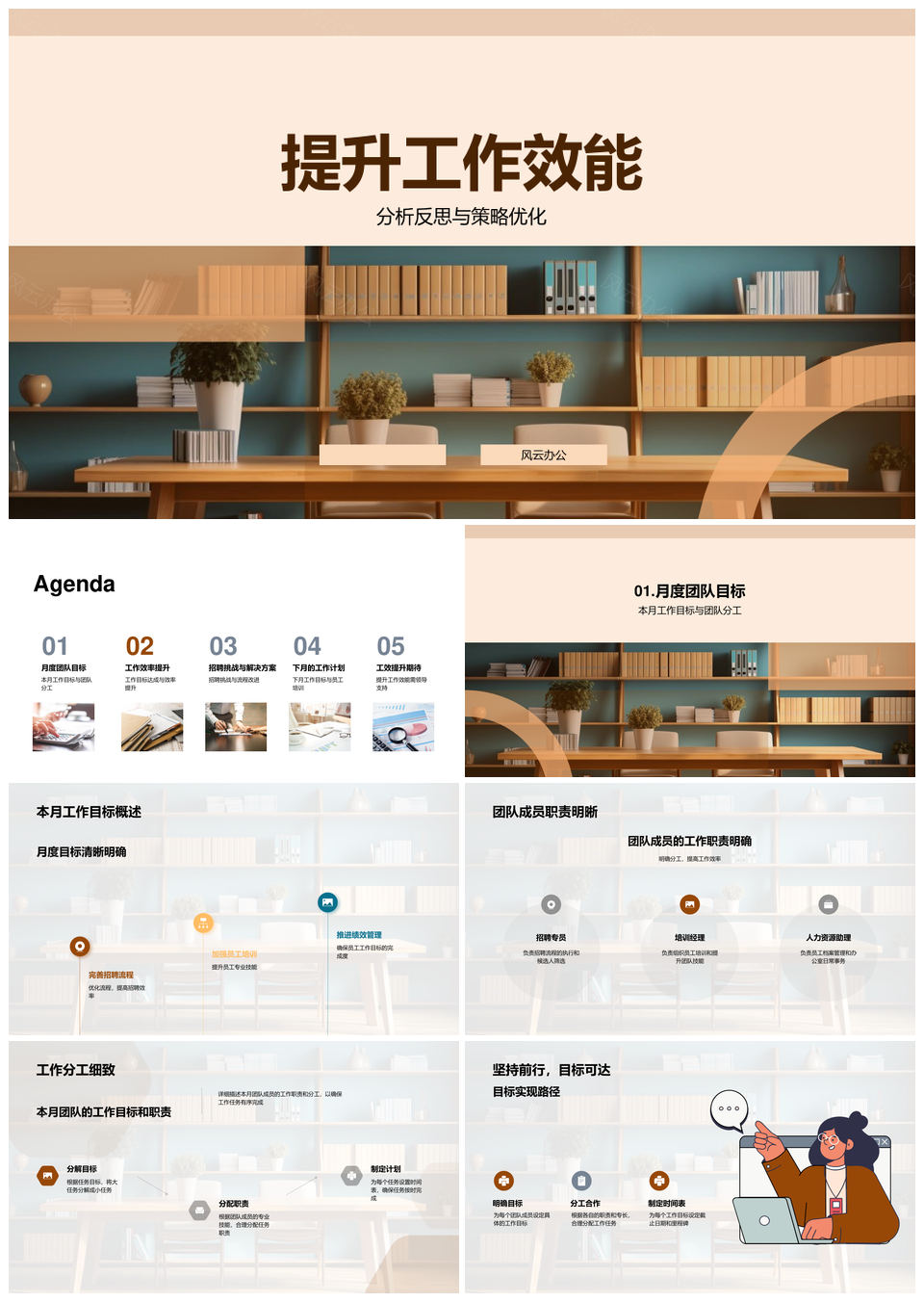 这是一张提升工作效能分析优化月报职责目标新工具招聘日程PPT模板,包含提升、工作效能、分析、优化、月报、职责、目标、新工具、招聘、日程等主题内容,也可用作提升工作效能分析优化、工作效能分析优化月报、分析优化月报职责、优化月报职责目标、月报职责目标新工具、职责目标新工具招聘、目标新工具招聘日程、工作效能分析优化月报、分析优化月报职责目标、优化月报职责目标新工具、月报职责目标新工具招聘、职责目标新工具招聘日程、提升工作效能分析优化、工作效能优化月报职责、分析优化目标新工具等PPT场景使用。 风云办公提供的提升工作效能分析优化月报职责目标新工具招聘日程PPT模板,下载格式为pptx,一共33页,作品中文字及图均可以修改和编辑,图片更改请在作品中右键图片并更换,文字修改请直接点击文字进行修改。