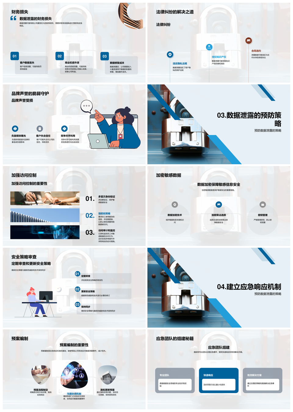 这是一张2025数据泄露预防应急响应专家管理风险锁损避纠PPT模板,包含2025、数据泄露、预防、应急响应、专家、管理、风险、锁损、避纠等主题内容,也可用作数据泄露预防应急响应、2025数据泄露预防、数据泄露应急响应管理、预防应急响应专家、数据泄露预防专家、应急响应专家管理、管理风险锁损避纠、数据泄露风险锁损、预防管理风险锁损、应急响应管理风险、专家管理风险锁损、数据泄露锁损避纠、预防应急管理风险、风险锁损避纠专家、数据泄露管理锁损等PPT场景使用。 风云办公提供的2025数据泄露预防应急响应专家管理风险锁损避纠PPT模板,下载格式为pptx,一共30页,作品中文字及图均可以修改和编辑,图片更改请在作品中右键图片并更换,文字修改请直接点击文字进行修改。