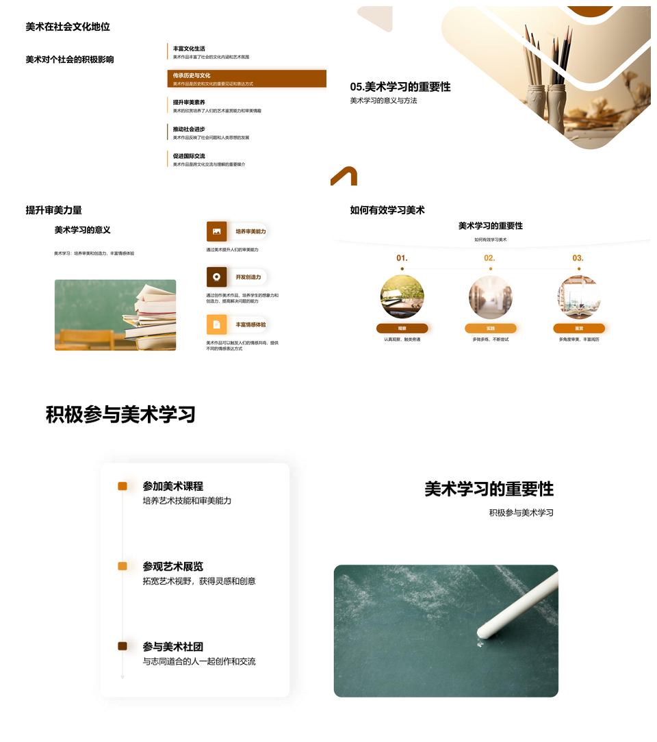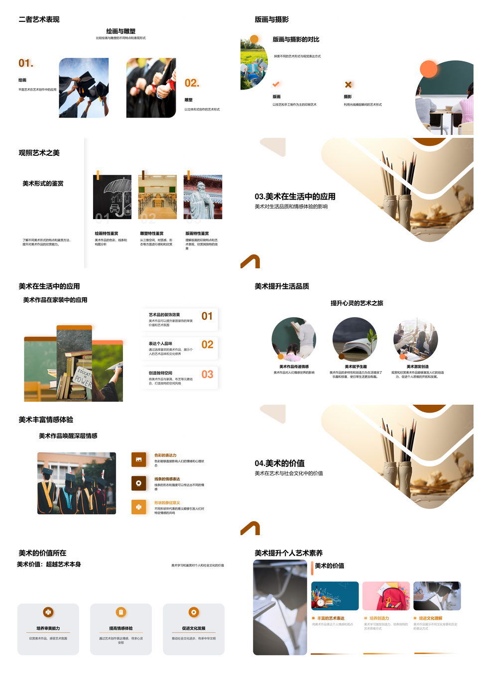 这是一张美术教育绘画雕塑摄影视觉艺术鉴赏解析PPT模板,包含美术教育、绘画、雕塑、摄影、视觉艺术、鉴赏、解析等主题内容,也可用作美术教育绘画雕塑摄影、美术教育绘画雕塑视觉艺术、美术教育雕塑摄影视觉艺术、绘画雕塑摄影视觉艺术鉴赏、雕塑摄影视觉艺术鉴赏解析、美术教育视觉艺术鉴赏解析、美术教育绘画摄影视觉艺术、绘画雕塑视觉艺术鉴赏解析、美术教育雕塑视觉艺术鉴赏、摄影视觉艺术鉴赏解析、美术教育绘画鉴赏解析、雕塑摄影视觉艺术鉴赏、美术教育绘画雕塑摄影、视觉艺术鉴赏解析、美术教育视觉艺术鉴赏等PPT场景使用。 风云办公提供的美术教育绘画雕塑摄影视觉艺术鉴赏解析PPT模板,下载格式为pptx,一共23页,作品中文字及图均可以修改和编辑,图片更改请在作品中右键图片并更换,文字修改请直接点击文字进行修改。