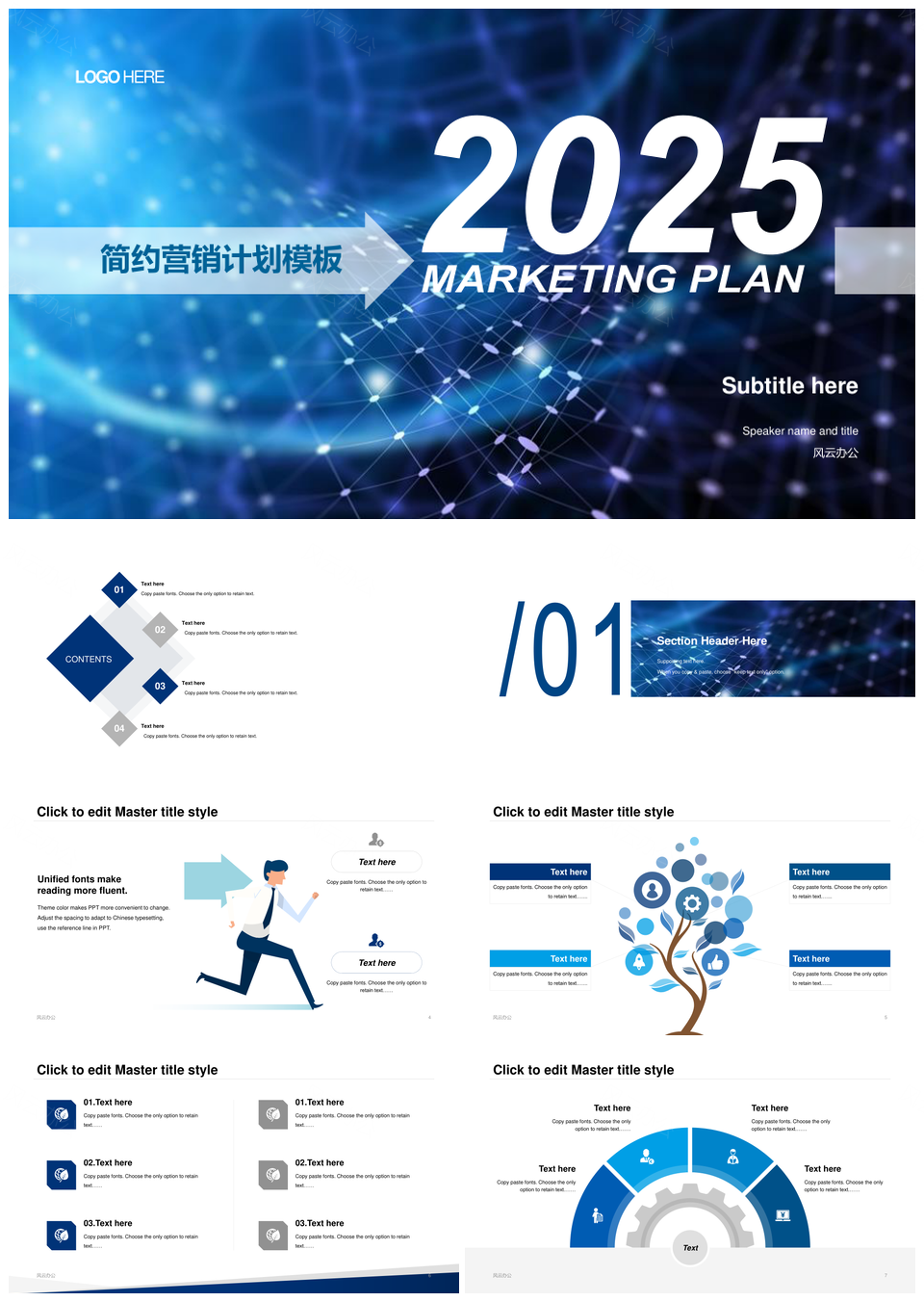 2025蓝色科技智能工作总结商业计划书PPT案例