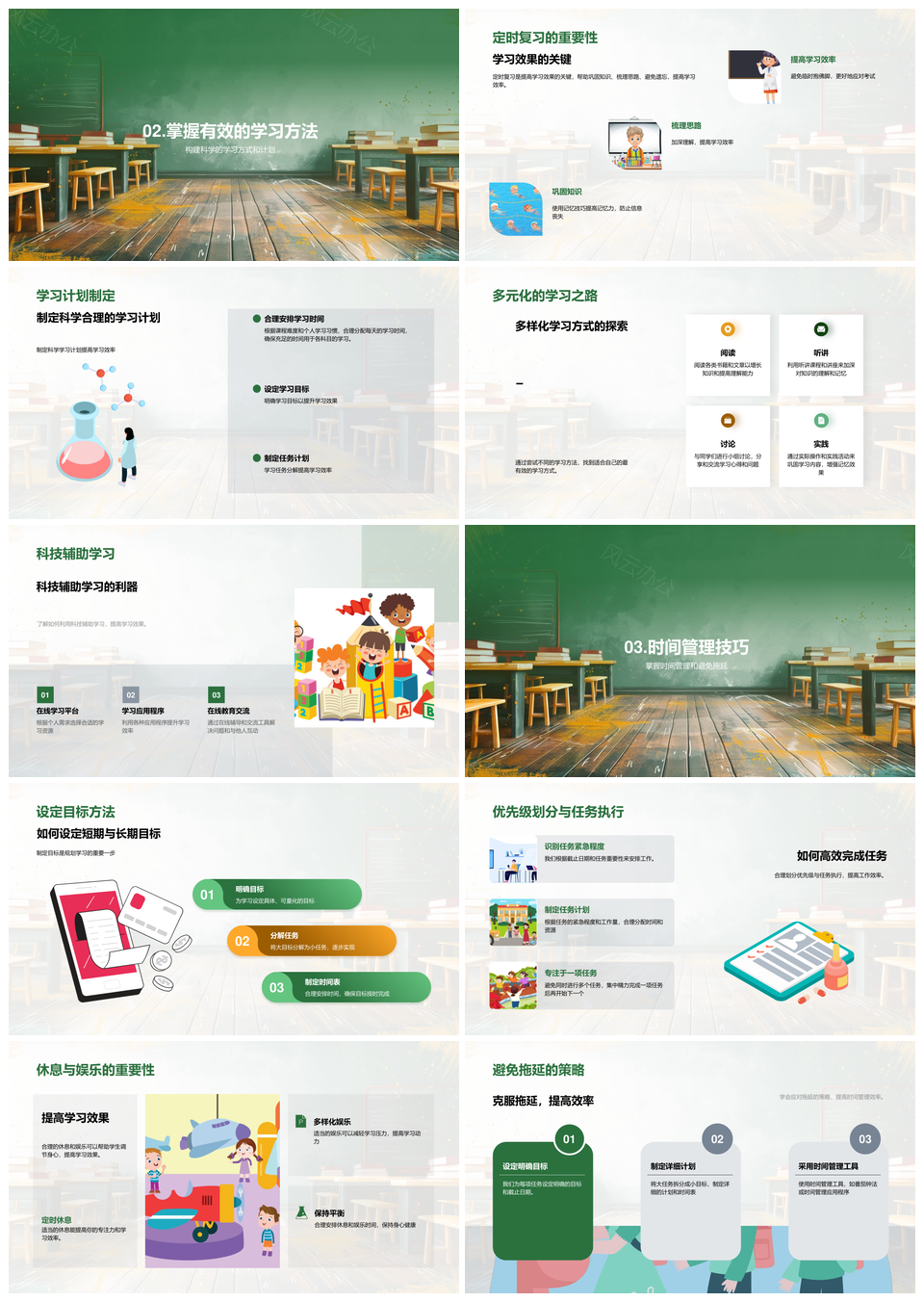 高效学习驱动力策略效率记忆技巧时间管理目标计划PPT模板