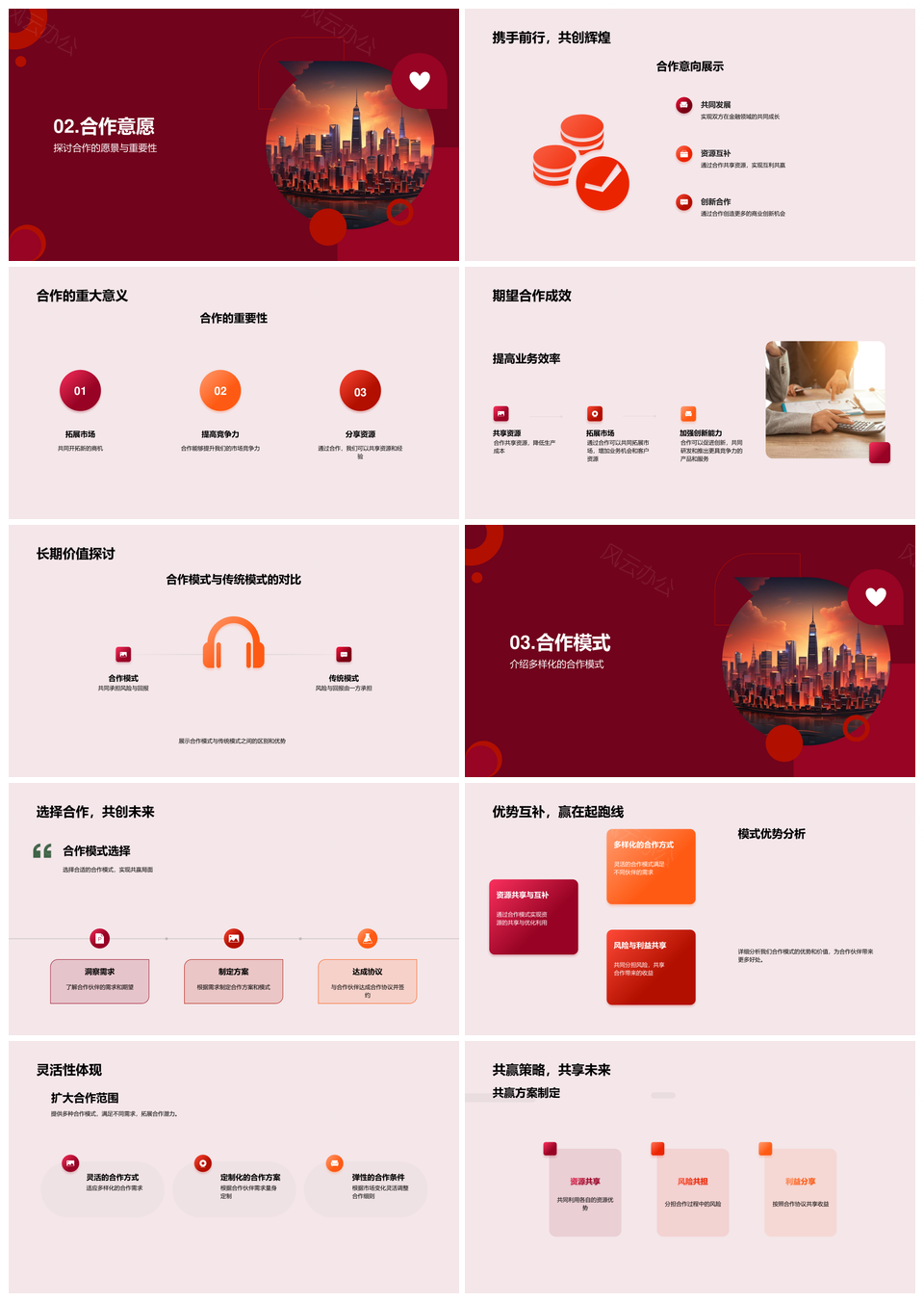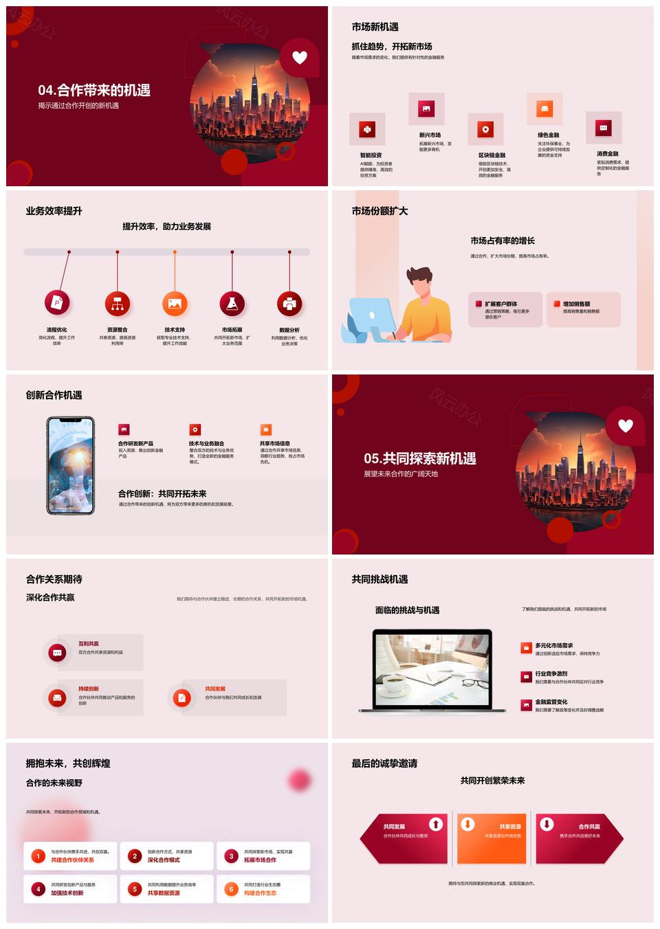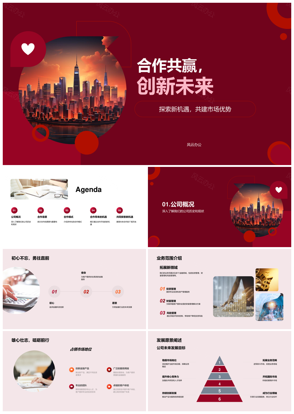 这是一张合作共赢创新未来摩天大楼新机遇市场优势PPT模板,包含合作共赢、创新、未来、摩天大楼、新机遇、市场优势等主题内容,也可用作合作共赢创新未来摩天大楼、创新未来摩天大楼新机遇、摩天大楼新机遇市场优势、合作共赢新机遇市场优势、创新未来摩天大楼市场优势、合作共赢创新摩天大楼、未来摩天大楼新机遇、合作共赢市场优势、创新未来新机遇、摩天大楼市场优势、新机遇市场优势、合作共赢创新、创新未来、摩天大楼新机遇、市场优势等PPT场景使用。 风云办公提供的合作共赢创新未来摩天大楼新机遇市场优势PPT模板,下载格式为pptx,一共28页,作品中文字及图均可以修改和编辑,图片更改请在作品中右键图片并更换,文字修改请直接点击文字进行修改。