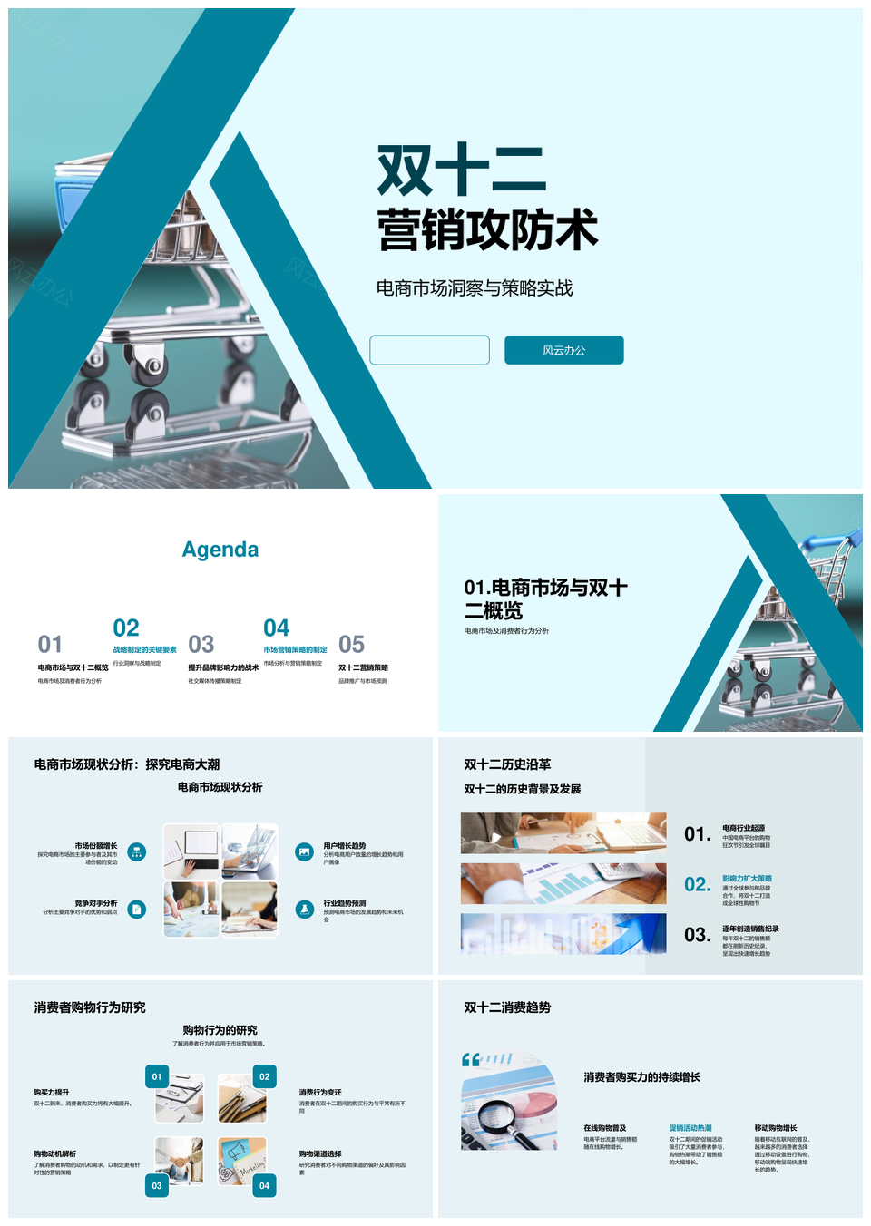 风云办公提供的双十二电商营销攻防策略实战趋势洞察PPT模板,下载格式为pptx,一共28页,作品中文字及图均可以修改和编辑,图片更改请在作品中右键图片并更换,文字修改请直接点击文字进行修改。
