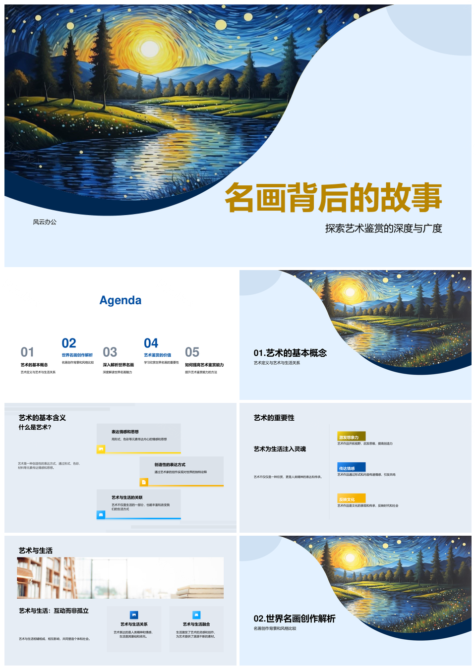 2025艺术鉴赏世界名画蒙娜丽莎星空达芬奇梵高作品故事欣赏技巧教学PPT模板