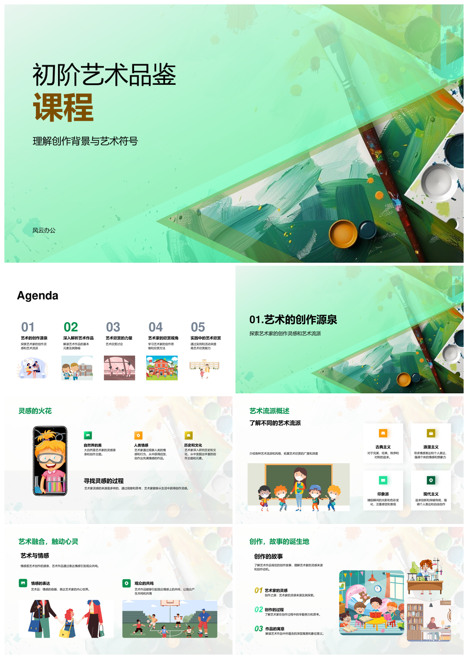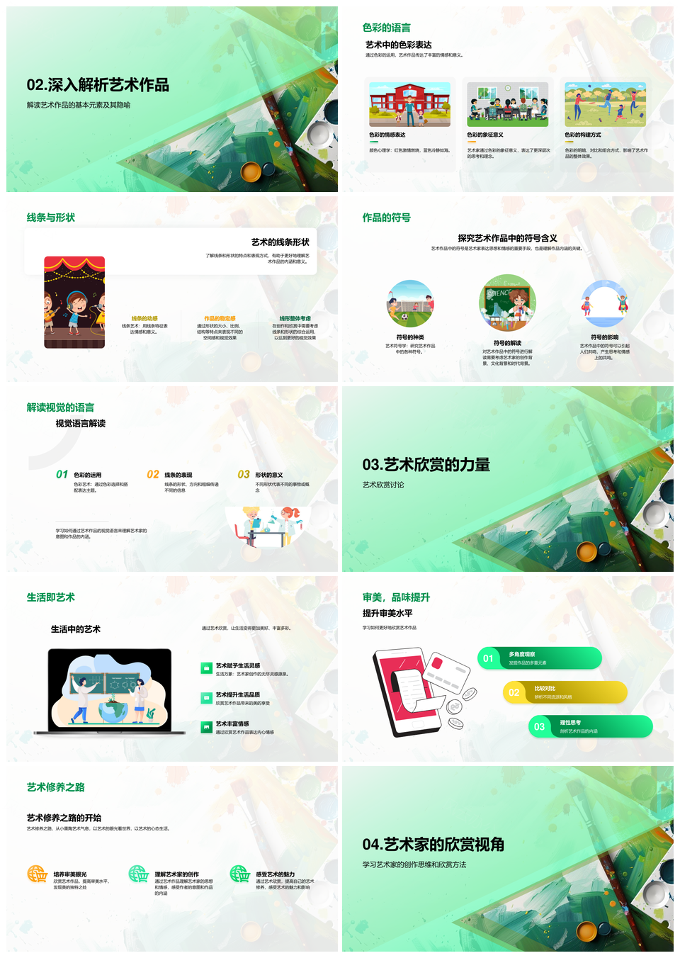艺术鉴析基础符号流派色彩线条创作灵感PPT模板推荐