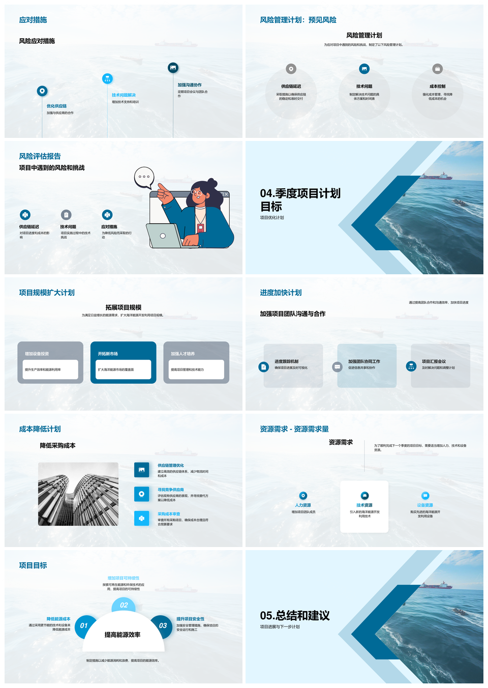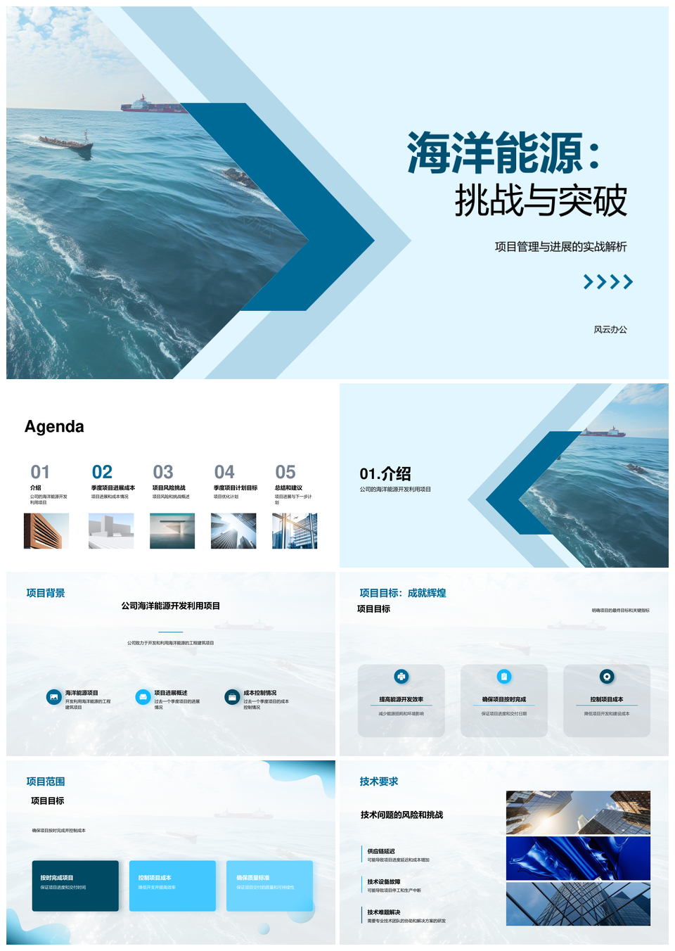 这是一张海洋能源工程季度进展控本风险管理未来计划风力涡轮机PPT模板,包含海洋能源、工程、季度、进展、控本、风险管理、未来计划、风力涡轮机等主题内容,也可用作海洋能源工程季度进展、风险管理未来计划风力涡轮机、海洋能源工程季度、未来计划风力涡轮机、海洋能源工程、季度进展控本风险、进展控本风险管理、控本风险管理未来、风险管理未来、未来计划风力、风力涡轮机、工程季度进展控本、季度进展控本、管理未来计划、未来计划风等PPT场景使用。 风云办公提供的海洋能源工程季度进展控本风险管理未来计划风力涡轮机PPT模板,下载格式为pptx,一共34页,作品中文字及图均可以修改和编辑,图片更改请在作品中右键图片并更换,文字修改请直接点击文字进行修改。