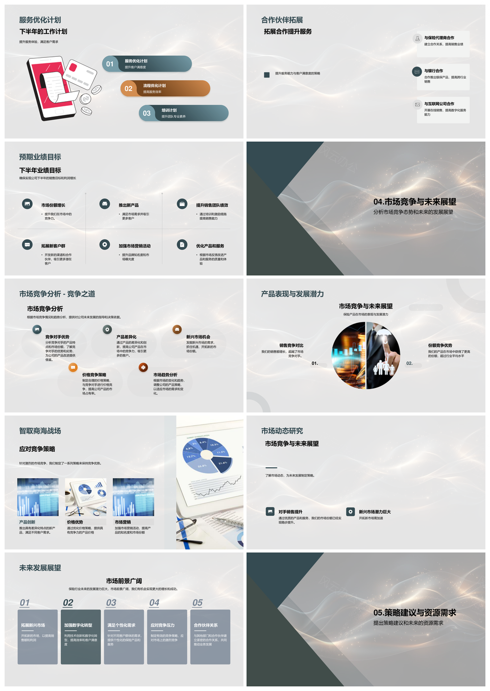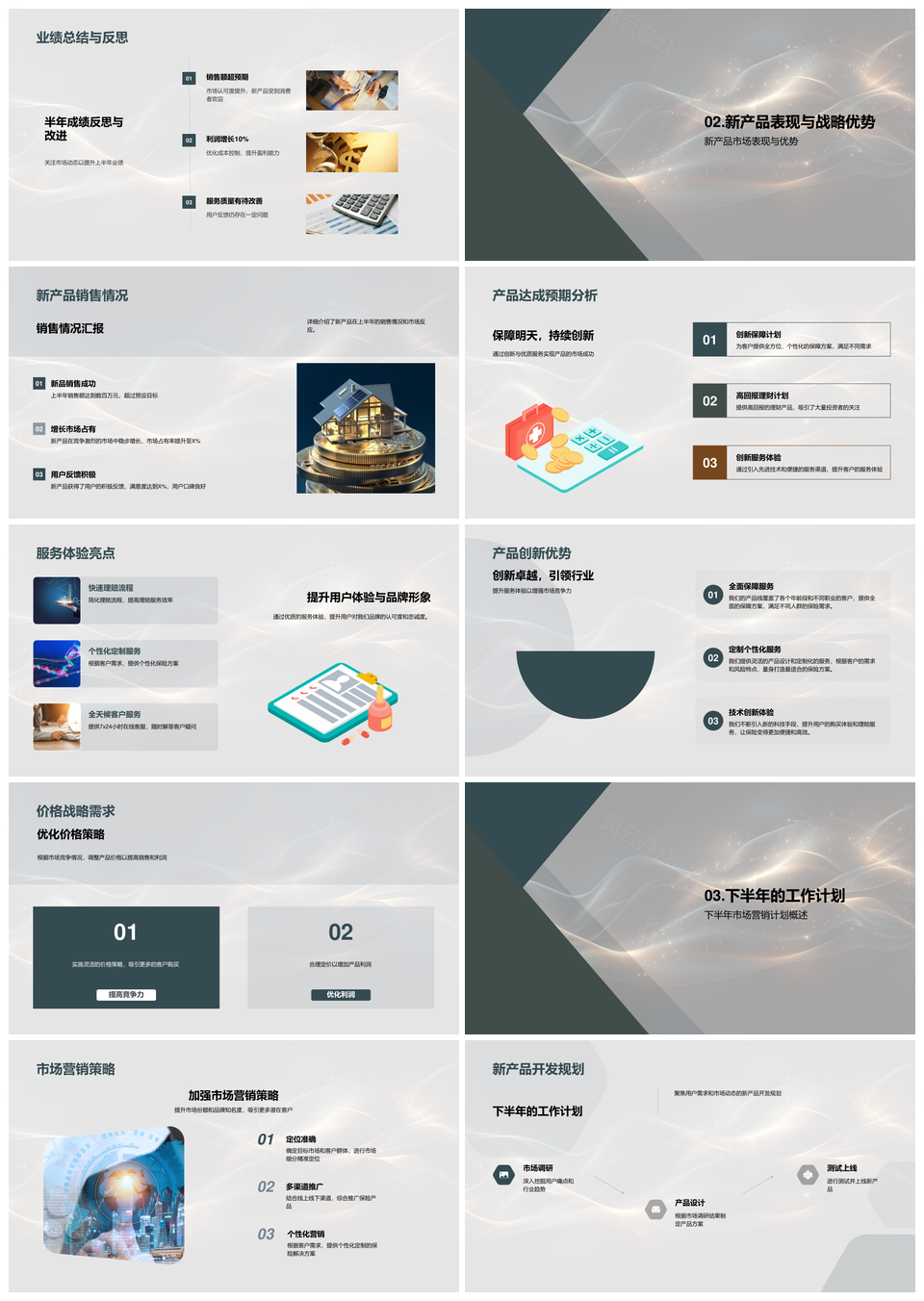 这是一张保险业务年中报告产品经理销售利润趋势新品服务创新竞争PPT模板,包含保险业务、年中报告、产品经理、销售利润、趋势、新品、服务、创新、竞争等主题内容,也可用作保险业务年中报告、产品经理销售利润趋势、年中报告新品服务创新、服务创新竞争趋势新品、保险业务新品服务创新、保险业务利润趋势新品、业务销售利润趋势新品、产品经理销售利润趋势、产品经理新品服务创新、保险业务产品经理销售、年中报告趋势新品服务、销售利润趋势新品服务、利润趋势新品服务创新、服务创新竞争趋势、业务销售利润趋势等PPT场景使用。 风云办公提供的保险业务年中报告产品经理销售利润趋势新品服务创新竞争PPT模板,下载格式为pptx,一共33页,作品中文字及图均可以修改和编辑,图片更改请在作品中右键图片并更换,文字修改请直接点击文字进行修改。