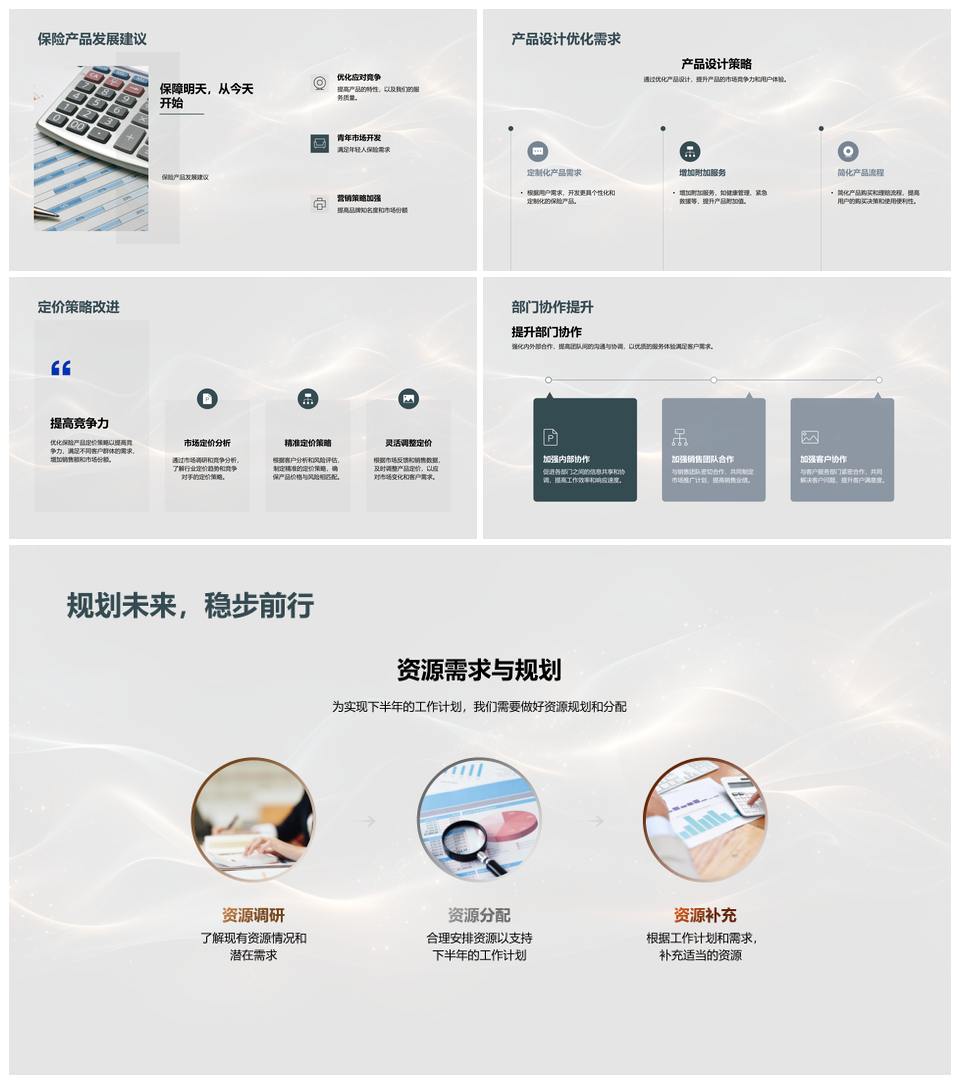 保险业务年中报告产品经理销售利润趋势新品服务创新竞争PPT模板推荐