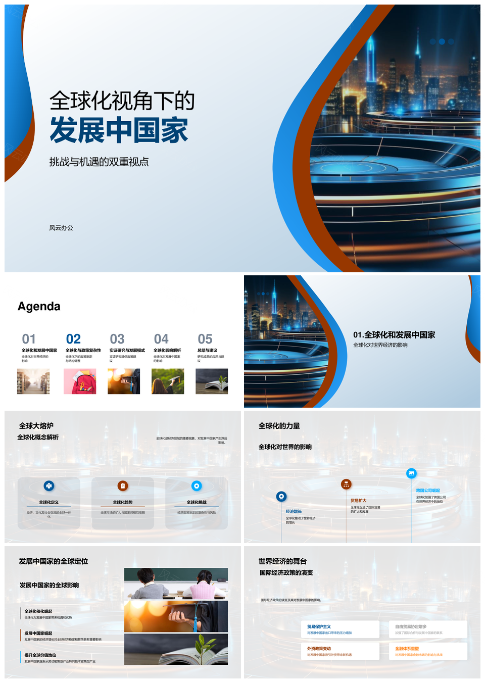 风云办公提供的全球化下发展中国家经济政策结构调整PPT模板,下载格式为pptx,一共26页,作品中文字及图均可以修改和编辑,图片更改请在作品中右键图片并更换,文字修改请直接点击文字进行修改。
