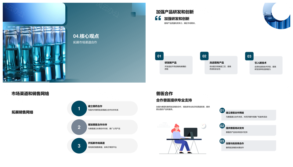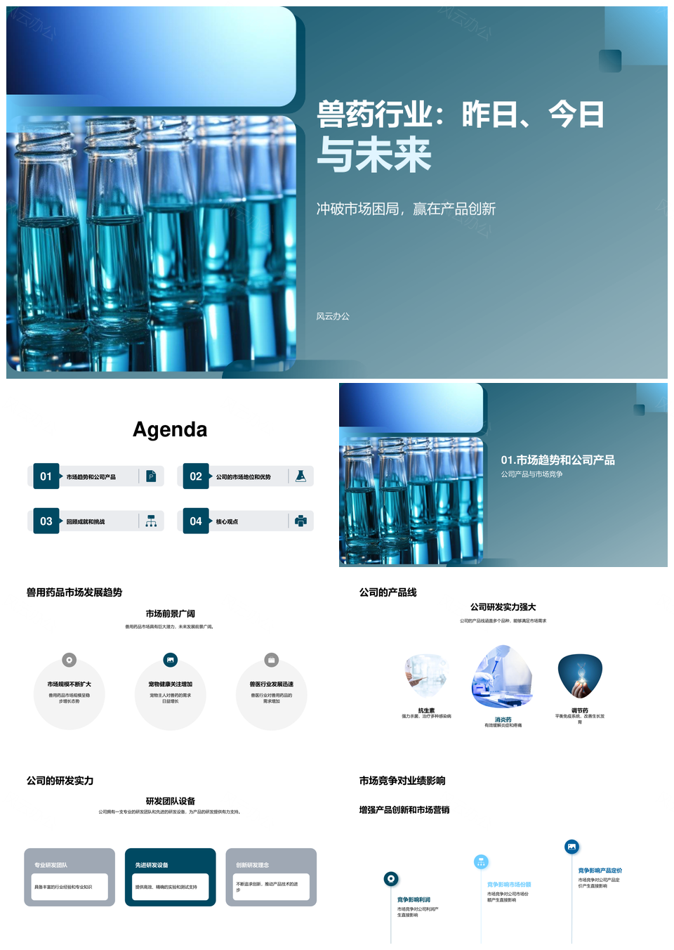 风云办公提供的兽药公司研发产品线市场竞争趋势前景PPT模板,下载格式为pptx,一共22页,作品中文字及图均可以修改和编辑,图片更改请在作品中右键图片并更换,文字修改请直接点击文字进行修改。