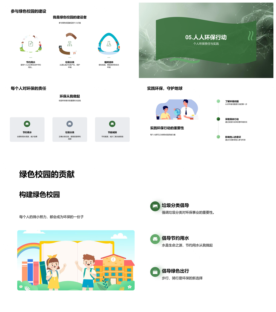 这是一张校园环保实践行动共建绿色校园PPT模板,包含校园、环保、实践、行动、共建、绿色等主题内容,也可用作校园环保实践行动、环保共建绿色校园、行动共建绿色校园、校园环保共建绿色、实践共建绿色校园、共建绿色校园、校园环保实践、环保实践行动、行动共建绿色、实践行动共建、校园环保共建、环保共建绿色、绿色校园、校园环保、环保实践等PPT场景使用。