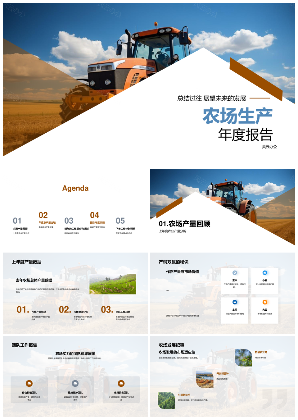 这是一张农场年度产量数据团队收获计划设施改善小麦田PPT模板,包含农场、年度、产量、数据、团队、收获、计划、设施、改善、小麦田等主题内容,也可用作农场年度产量数据团队、年度产量数据团队收获、产量数据团队收获计划、数据团队收获计划设施、团队收获计划设施改善、收获计划设施改善小麦田、农场年度产量数据、年度产量数据团队、产量数据团队收获、数据团队收获计划、团队收获计划设施、收获计划设施改善、计划设施改善小麦田、农场产量数据团队、年度数据团队收获、产量团队收获计划、数据收获计划设施、团队计划设施改善、收获设施改善小麦田、农场年度产量、年度产量数据、产量数据团队、数据团队收获、团队收获计划、收获计划设施、计划设施改善、设施改善小麦田、小麦田农场年度、农场年度数据、产量数据设施等PPT场景使用。 风云办公提供的农场年度产量数据团队收获计划设施改善小麦田PPT模板,下载格式为pptx,一共28页,作品中文字及图均可以修改和编辑,图片更改请在作品中右键图片并更换,文字修改请直接点击文字进行修改。