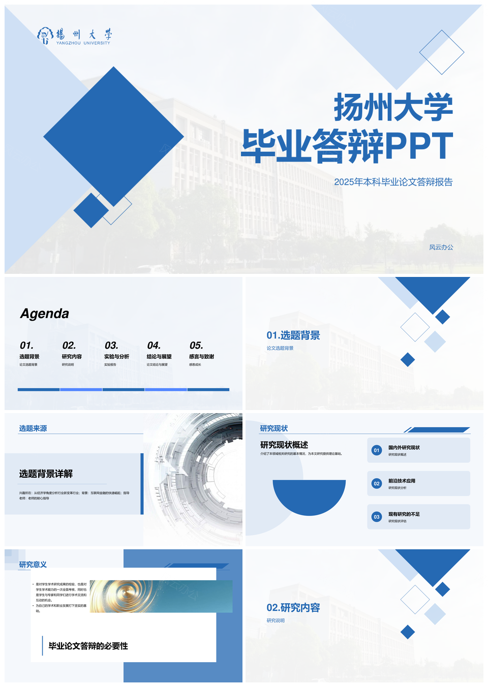 2025蓝色几何扬州大学简约毕业答辩PPT模板