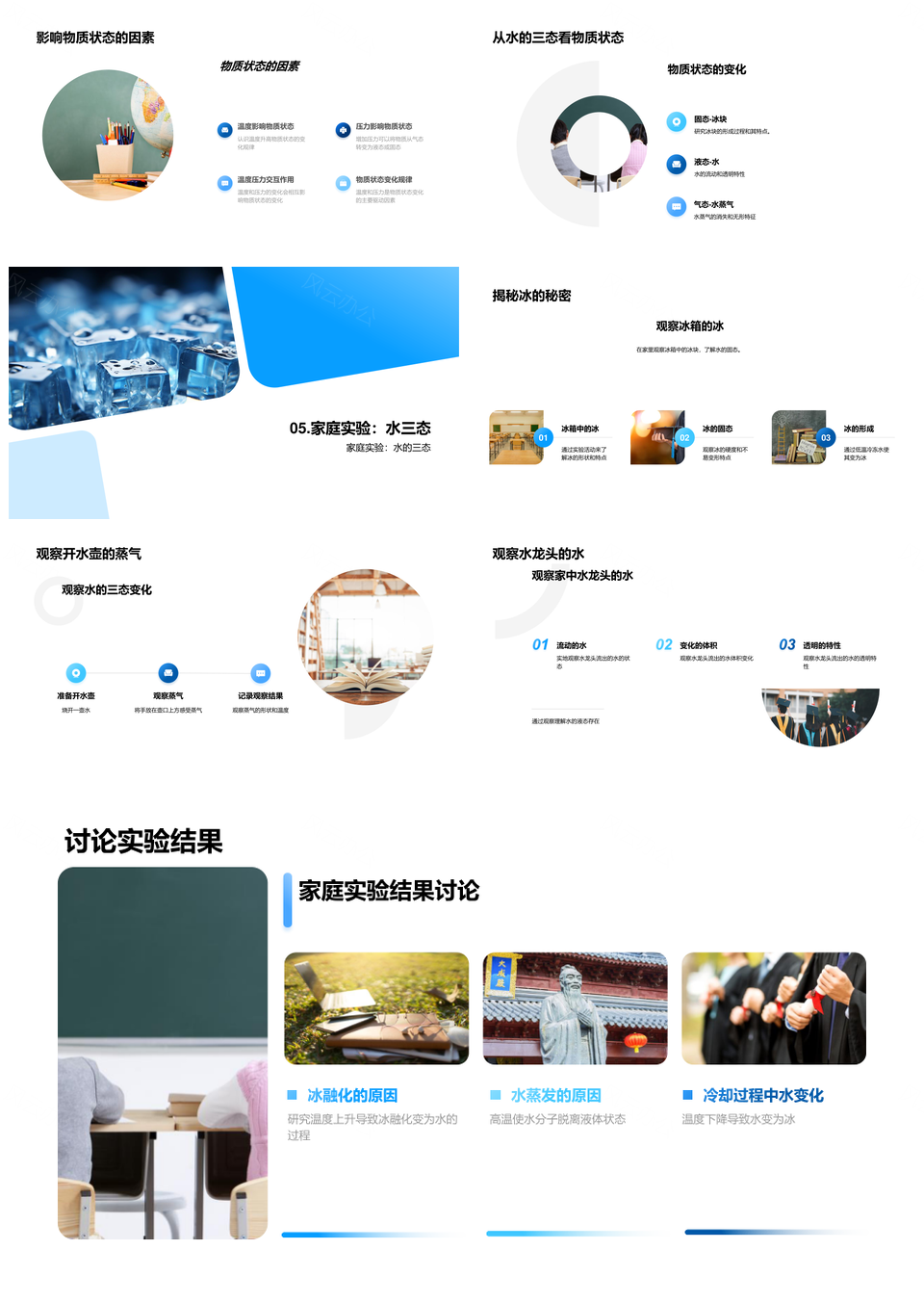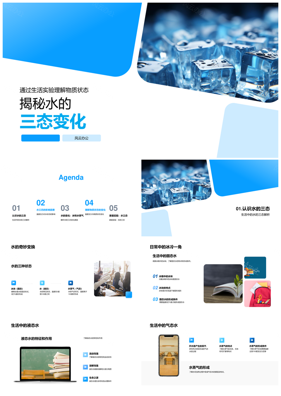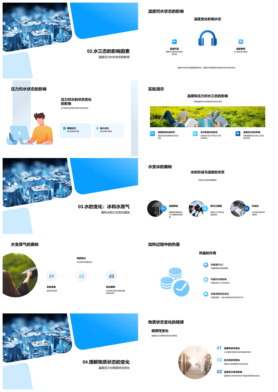 风云办公提供的水三态变化温度压力实验探秘PPT模板,下载格式为pptx,一共25页,作品中文字及图均可以修改和编辑,图片更改请在作品中右键图片并更换,文字修改请直接点击文字进行修改。