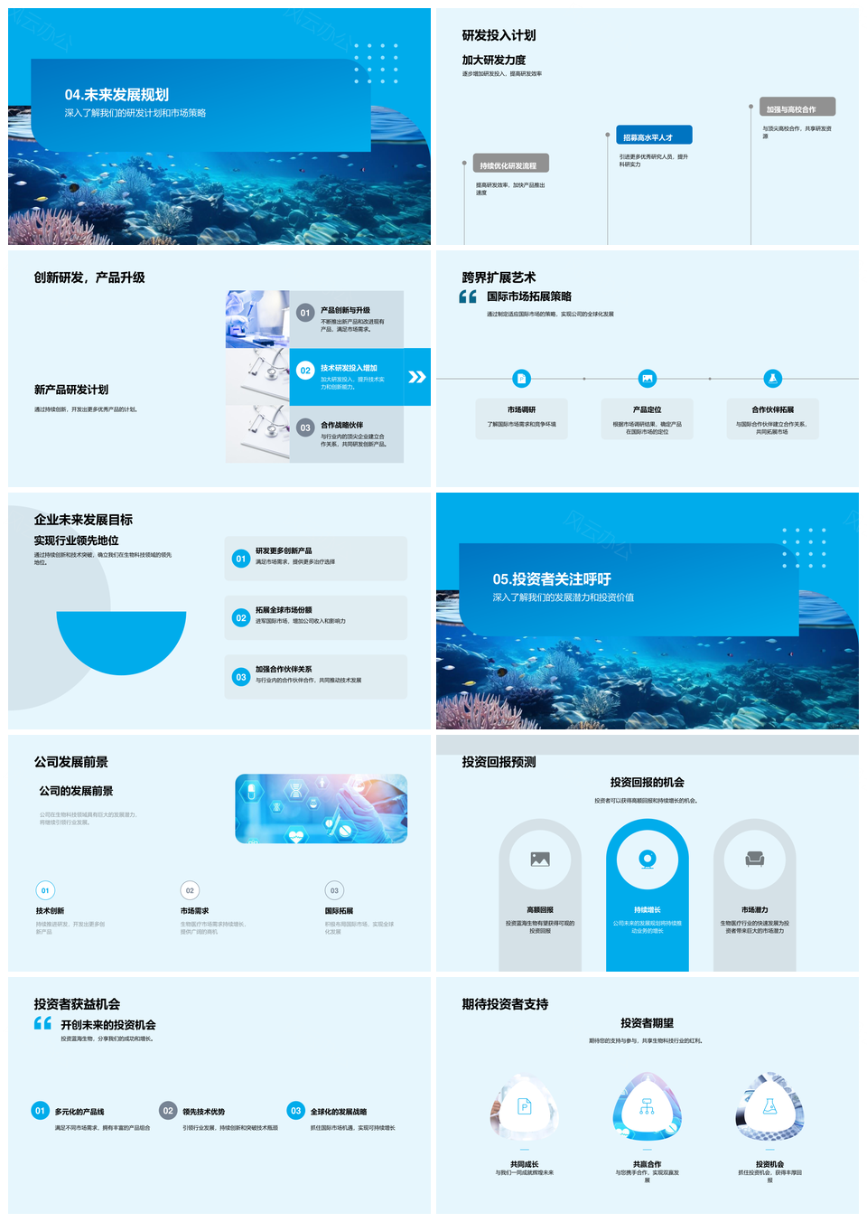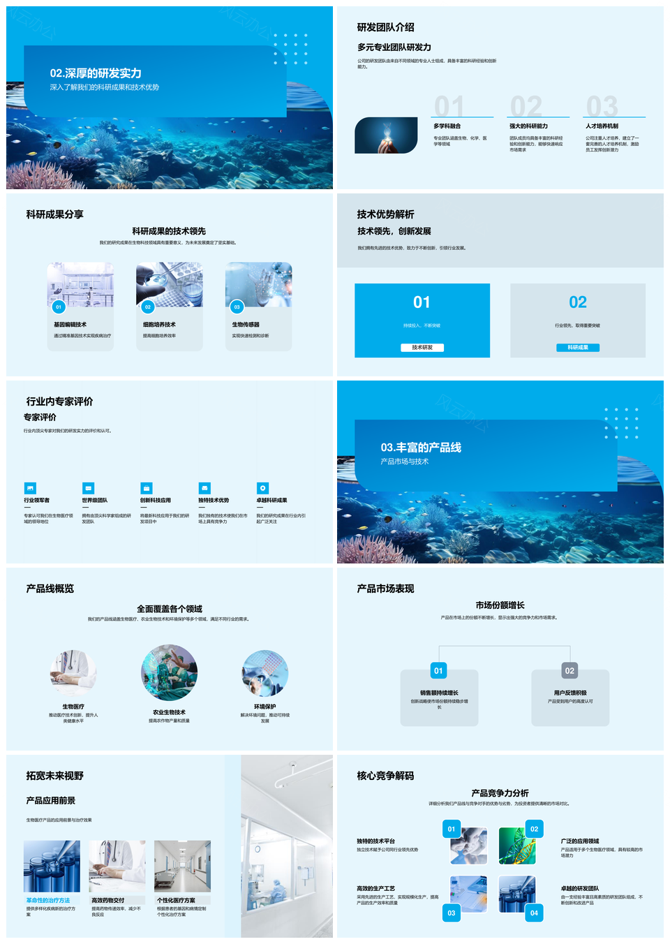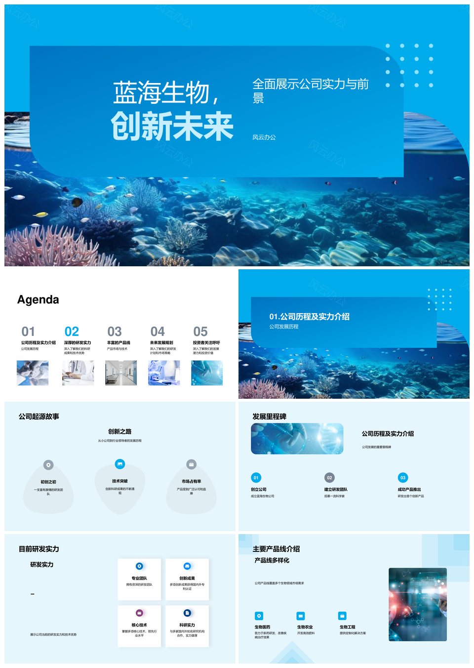 风云办公提供的蓝海生物科技研发领航未来市场PPT模板,下载格式为pptx,一共28页,作品中文字及图均可以修改和编辑,图片更改请在作品中右键图片并更换,文字修改请直接点击文字进行修改。