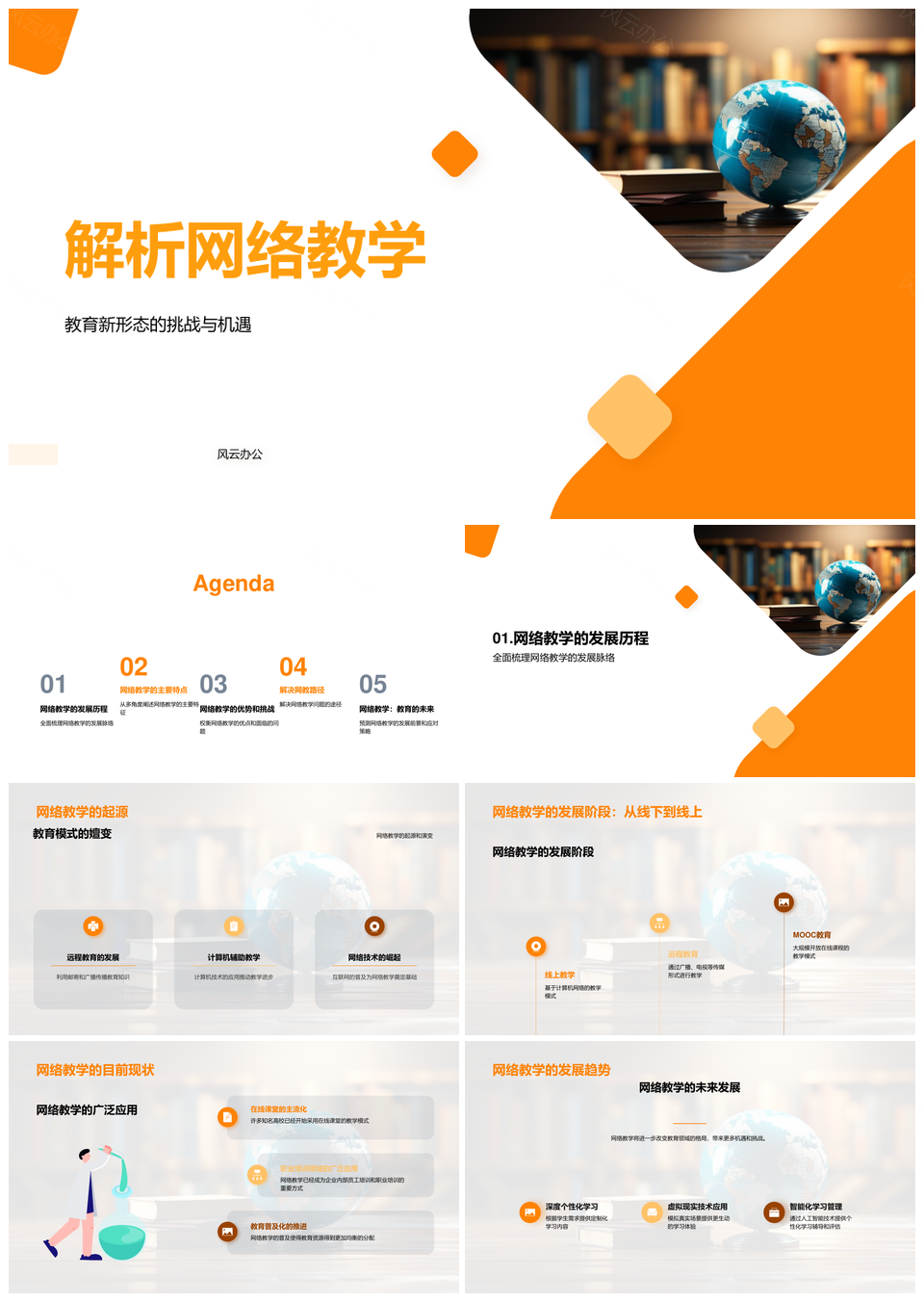 风云办公提供的网络教学教育新形态挑战机遇与未来PPT模板,下载格式为pptx,一共27页,作品中文字及图均可以修改和编辑,图片更改请在作品中右键图片并更换,文字修改请直接点击文字进行修改。