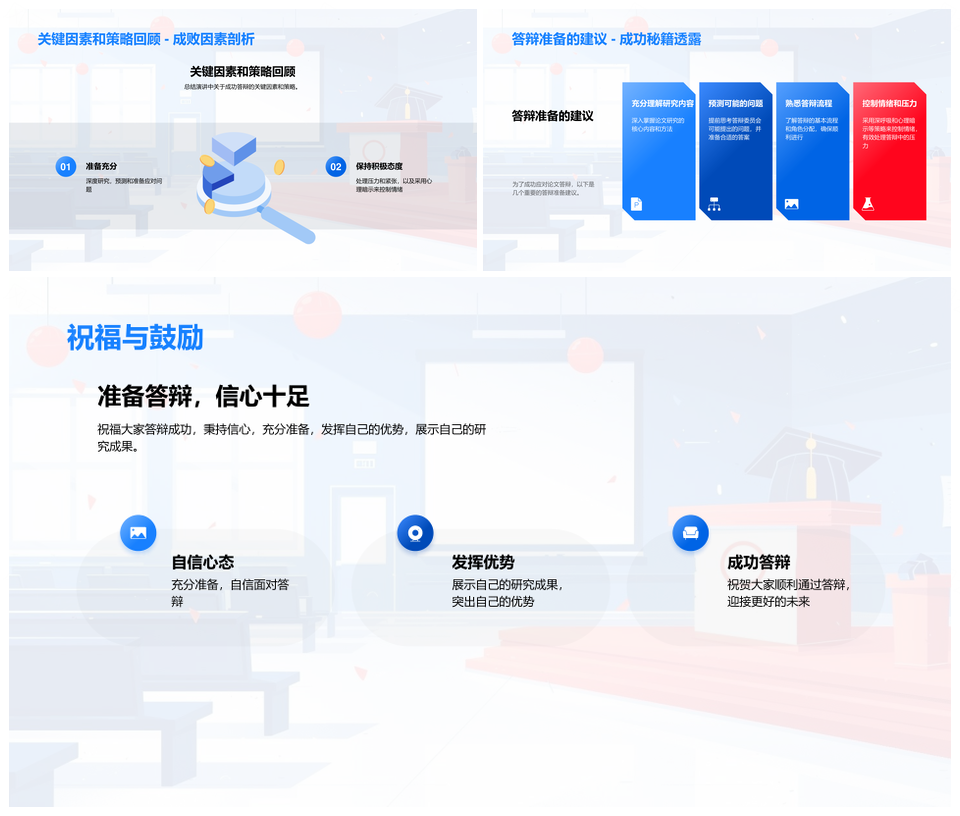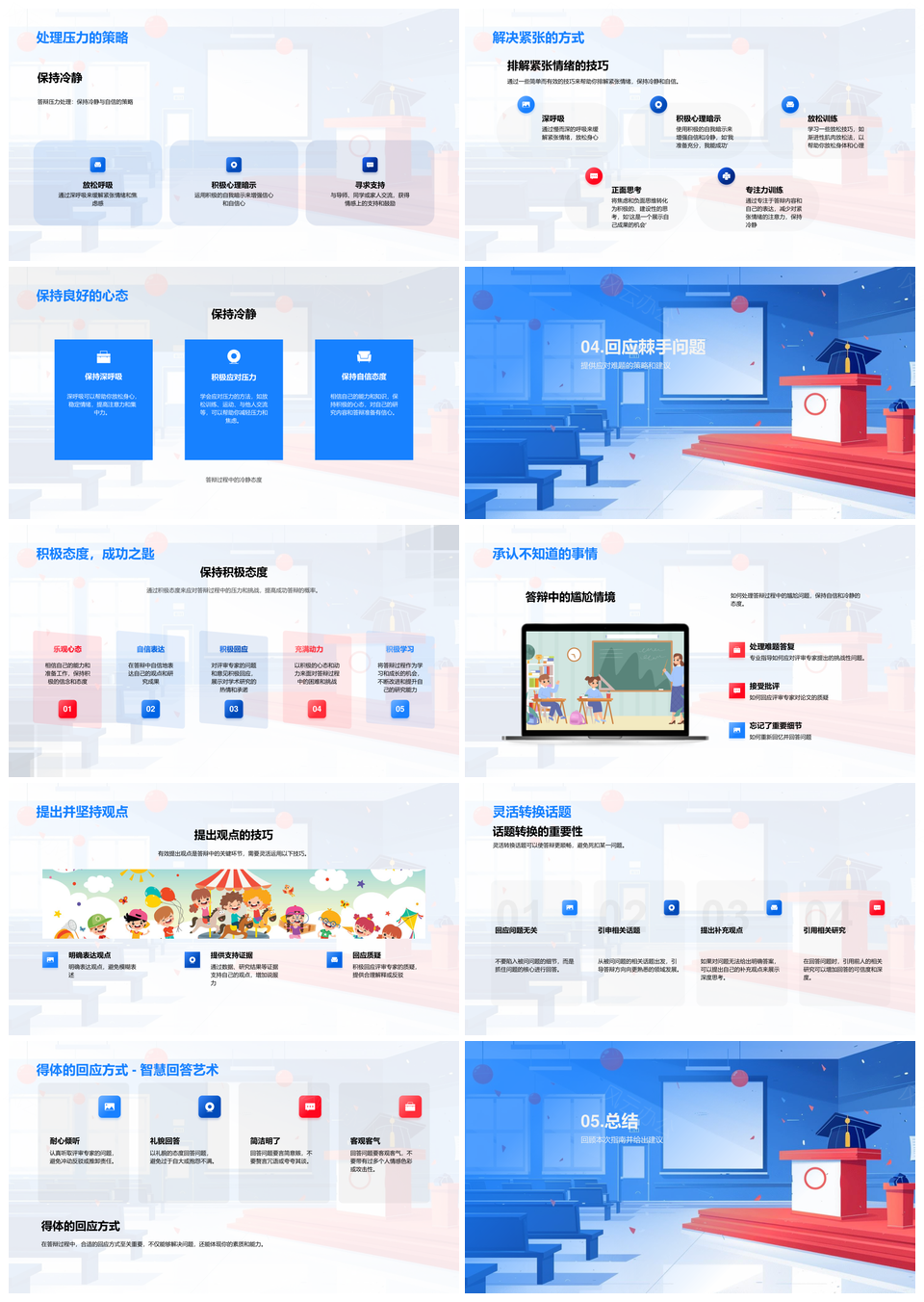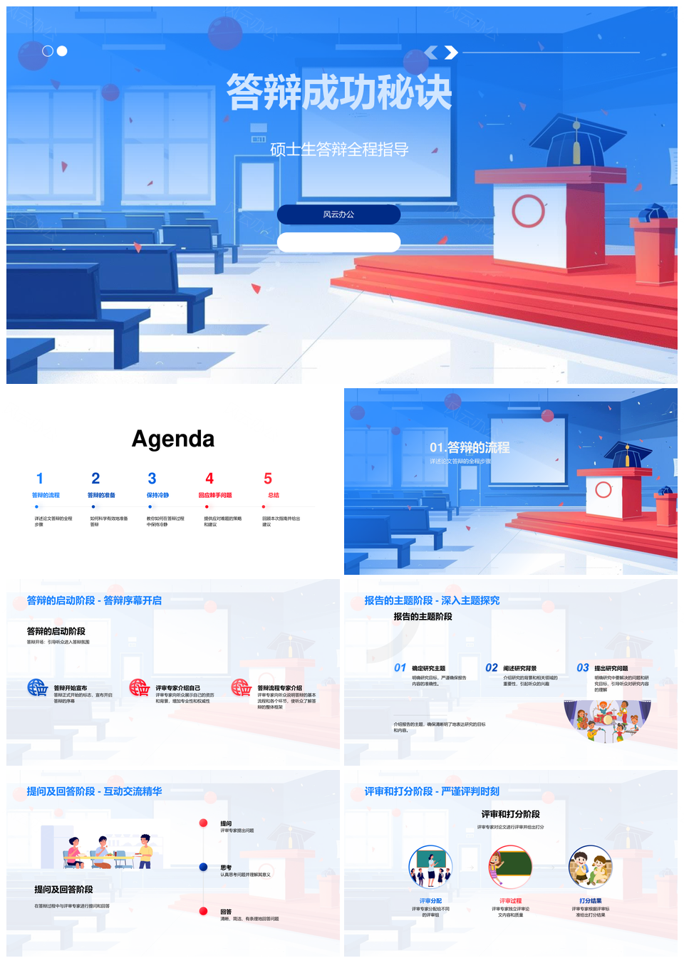 答辩成功秘诀流程研究内容情绪准备压力管理PPT模板推荐