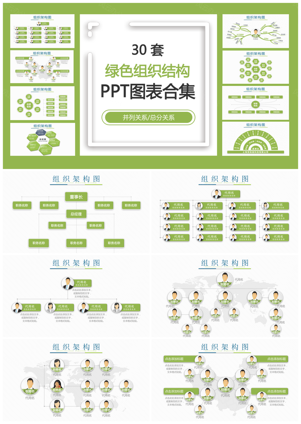 这是一张绿色组织结构PPT模板,包含绿色、组织结构等主题内容,也可用作绿色、组织、结构 绿色组织结构、绿色组织、绿色结构、组织结构等PPT场景使用。 风云办公提供的绿色组织结构PPT模板,下载格式为pptx,一共31页,作品中文字及图均可以修改和编辑,图片更改请在作品中右键图片并更换,文字修改请直接点击文字进行修改。