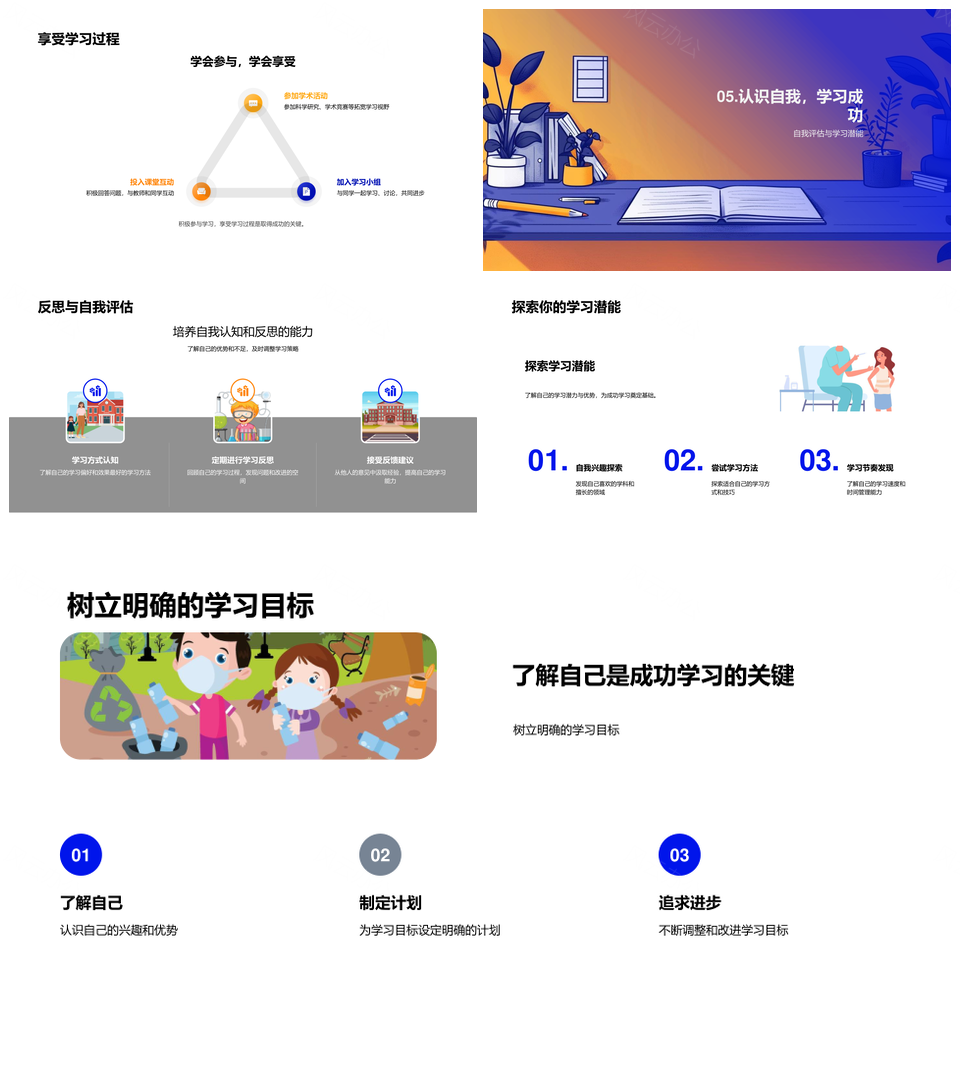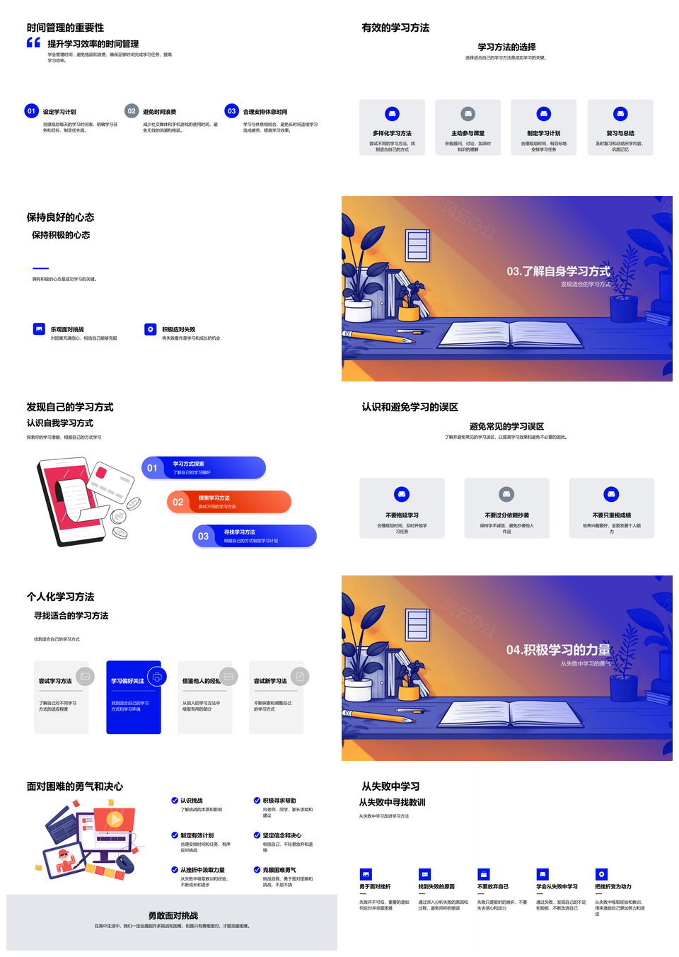 这是一张高一学习适应压力时间方法调整心态误区失败PPT模板,包含高一、学习、适应、压力、时间、方法、调整、心态、误区、失败等主题内容,也可用作高一学习适应压力、适应压力时间方法、调整心态时间方法、高一学习方法调整、学习适应压力调整、时间方法调整心态、方法调整心态误区、调整心态误区失败、高一学习压力调整、适应压力调整心态、学习压力时间方法、调整心态时间方法、压力时间方法调整、学习适应方法调整、调整心态误区等PPT场景使用。 风云办公提供的高一学习适应压力时间方法调整心态误区失败PPT模板,下载格式为pptx,一共23页,作品中文字及图均可以修改和编辑,图片更改请在作品中右键图片并更换,文字修改请直接点击文字进行修改。