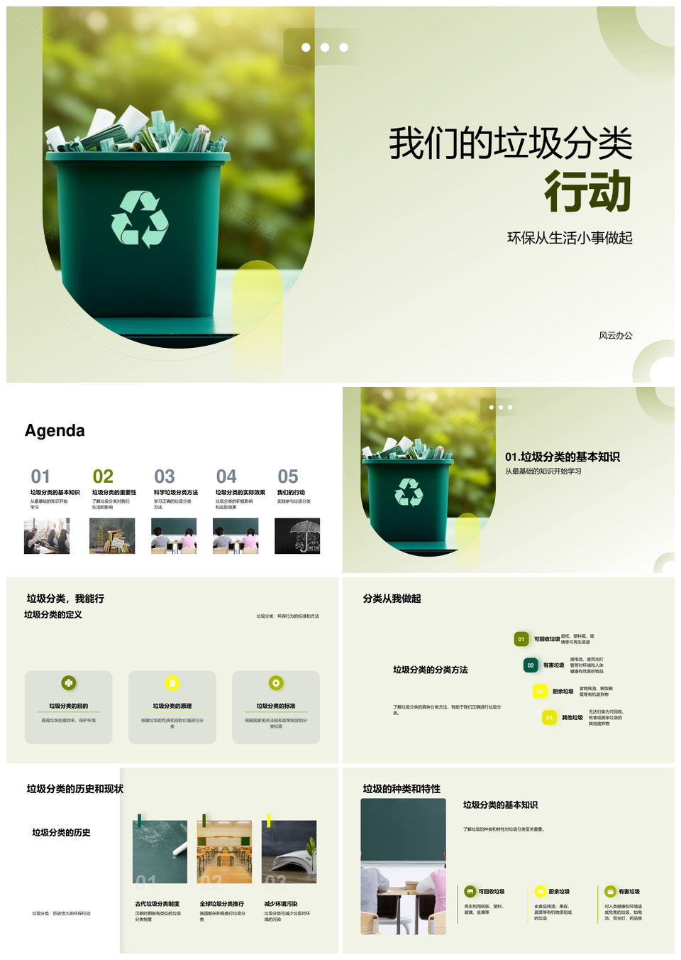 垃圾分类环保行动资源回收处理教育标准PPT模板