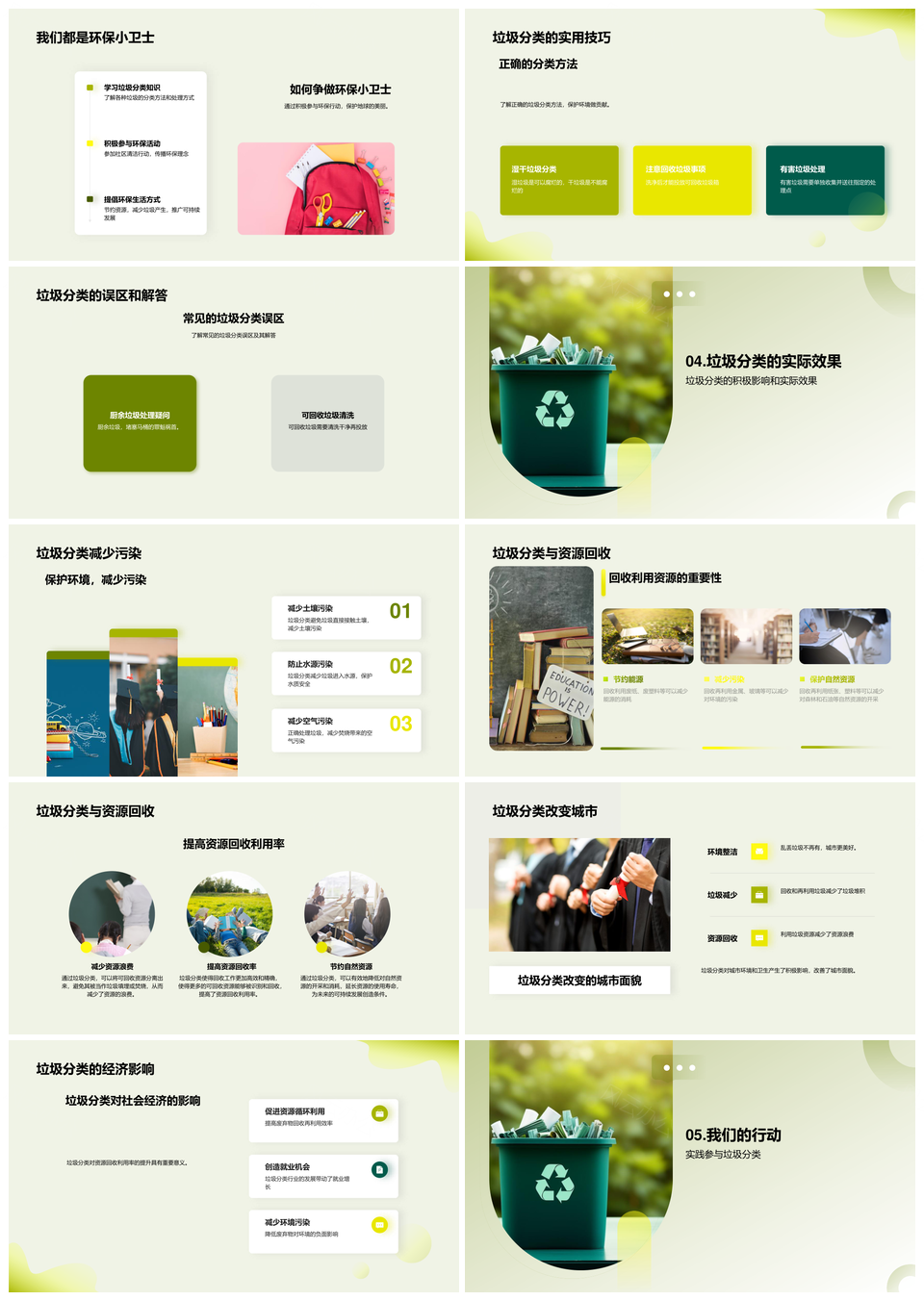 学生争做环保小卫士垃圾分类资源回收行动PPT模板推荐