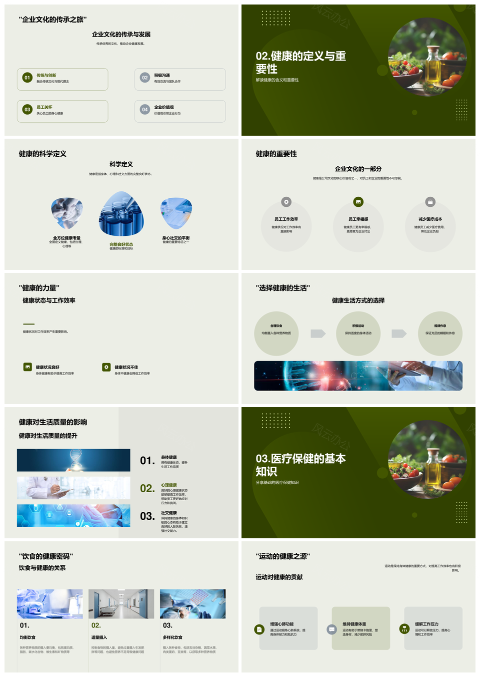 企业健康文化医疗保健价值观效率饮食运动PPT模板推荐