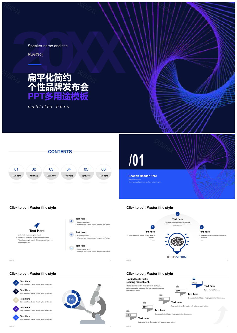 扁平简约个性品牌发布会多用途营销策划PPT模板