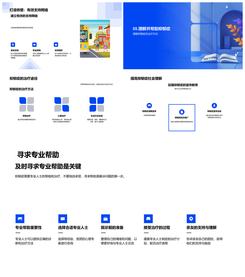 大学生抑郁症症状识别干预心理健康教育PPT模板