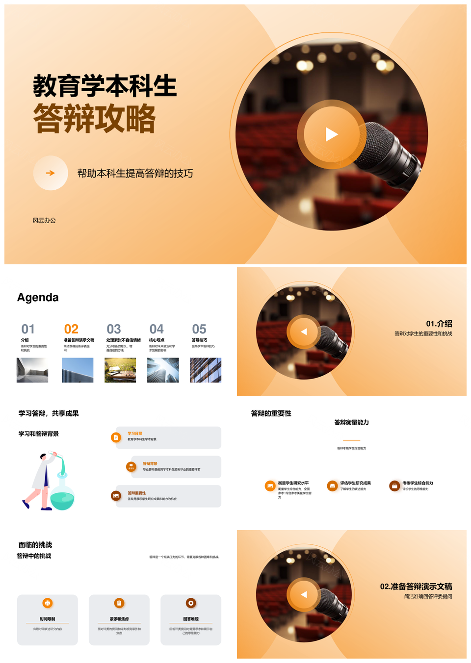 教育学本科生答辩技巧学习挑战研究背景麦克风PPT模板推荐