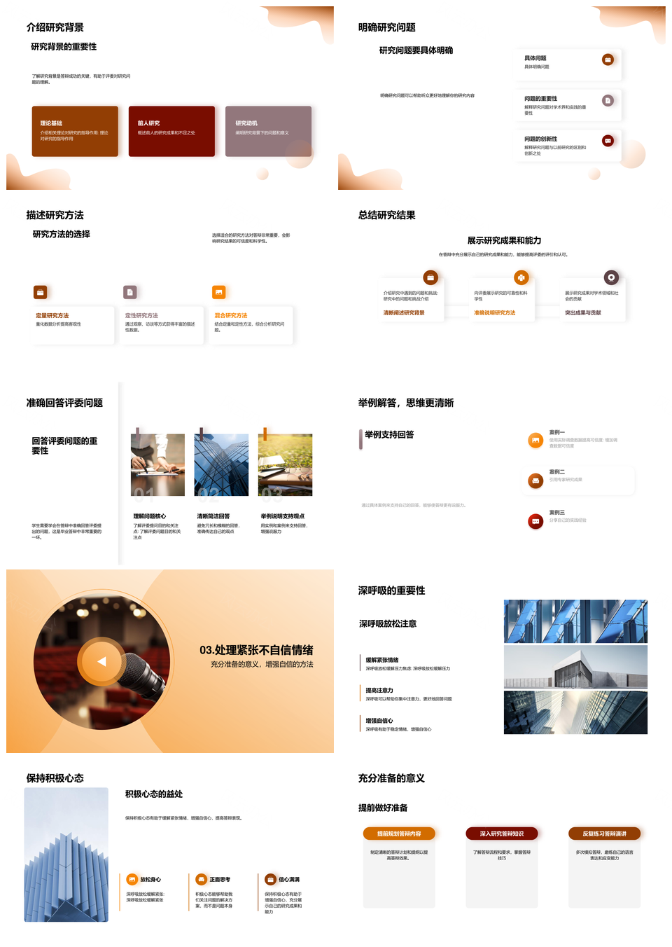 这是一张教育学本科生答辩技巧学习挑战研究背景麦克风PPT模板,包含教育学、本科生、答辩技巧、学习挑战、研究背景、麦克风等主题内容,也可用作教育学本科生答辩技巧、本科生答辩技巧学习、答辩技巧学习挑战、技巧学习挑战研究、学习挑战研究背景、挑战研究背景麦克风、教育学本科生答辩、本科生答辩技巧、答辩技巧学习、技巧学习挑战、学习挑战研究、挑战研究背景、研究背景麦克风、教育学本科生、答辩技巧等PPT场景使用。 风云办公提供的教育学本科生答辩技巧学习挑战研究背景麦克风PPT模板,下载格式为pptx,一共31页,作品中文字及图均可以修改和编辑,图片更改请在作品中右键图片并更换,文字修改请直接点击文字进行修改。