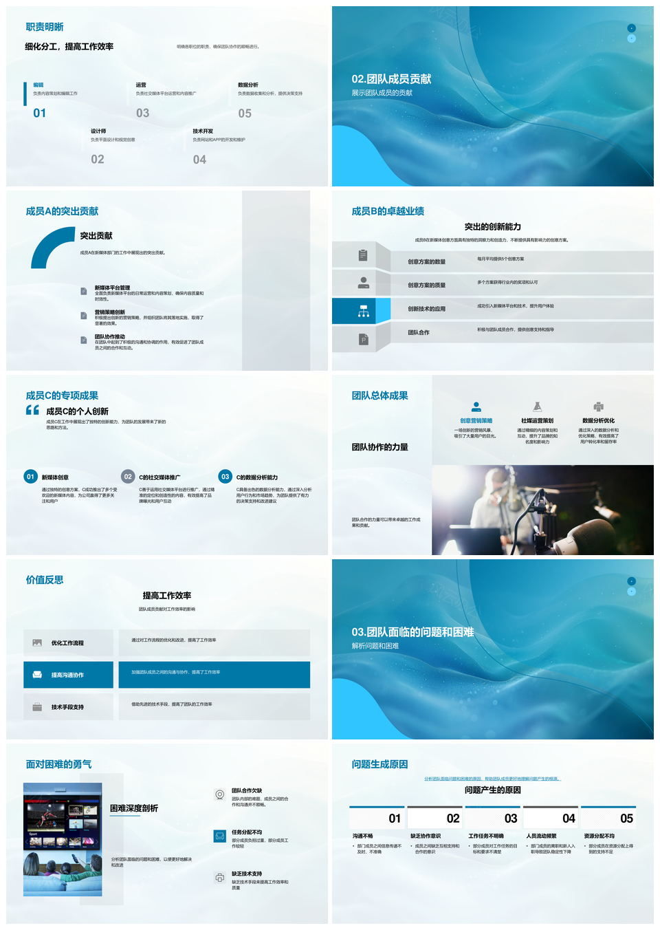 新媒体团队分工贡献效率优化目标措施计划PPT模板推荐
