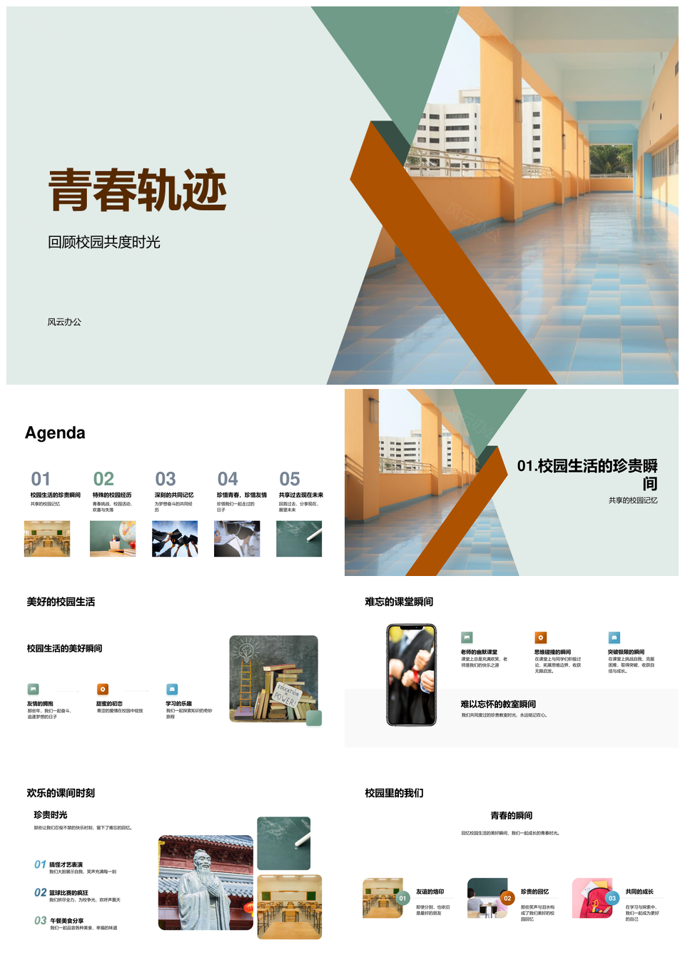 风云办公提供的青春校园同窗竞逐楼影记忆PPT模板,下载格式为pptx,一共33页,作品中文字及图均可以修改和编辑,图片更改请在作品中右键图片并更换,文字修改请直接点击文字进行修改。