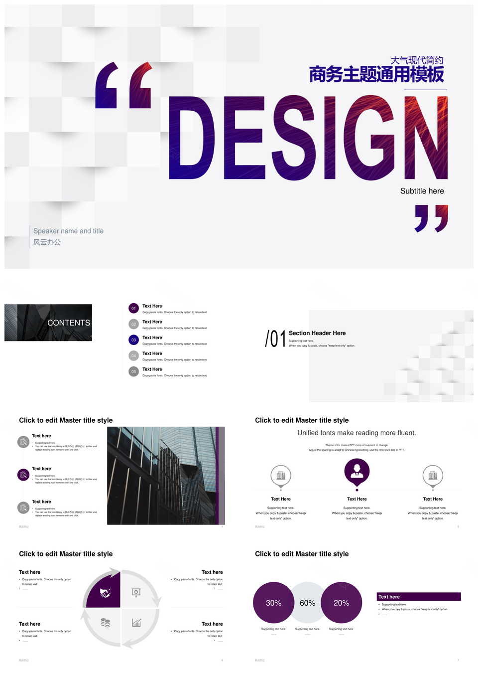 风云办公提供的大气商务简约通用主题工作总结汇报PPT素材,下载格式为pptx,一共31页,作品中文字及图均可以修改和编辑,图片更改请在作品中右键图片并更换,文字修改请直接点击文字进行修改。