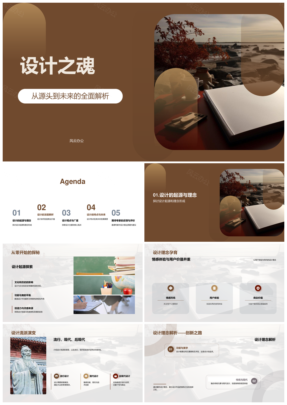风云办公提供的设计之魂溯源未来融理念过程需求价值PPT模板,下载格式为pptx,一共33页,作品中文字及图均可以修改和编辑,图片更改请在作品中右键图片并更换,文字修改请直接点击文字进行修改。