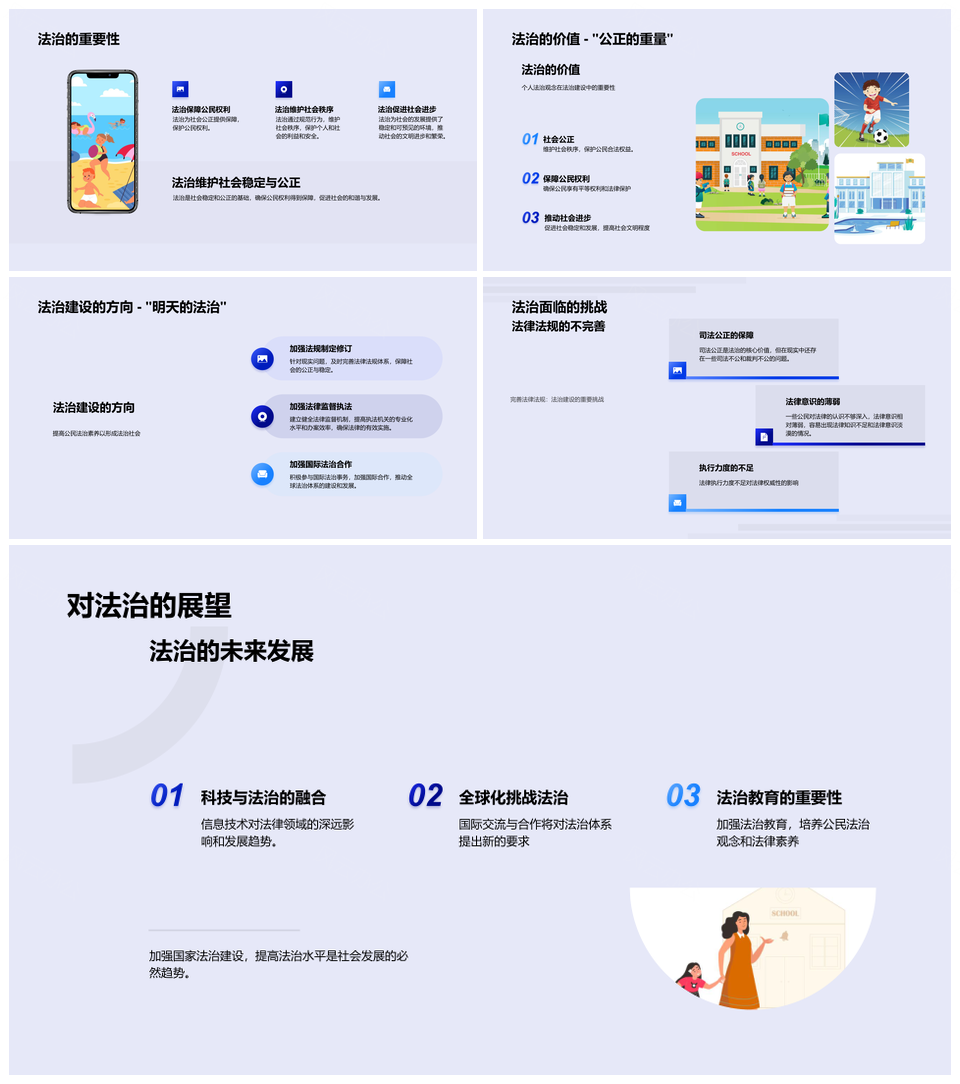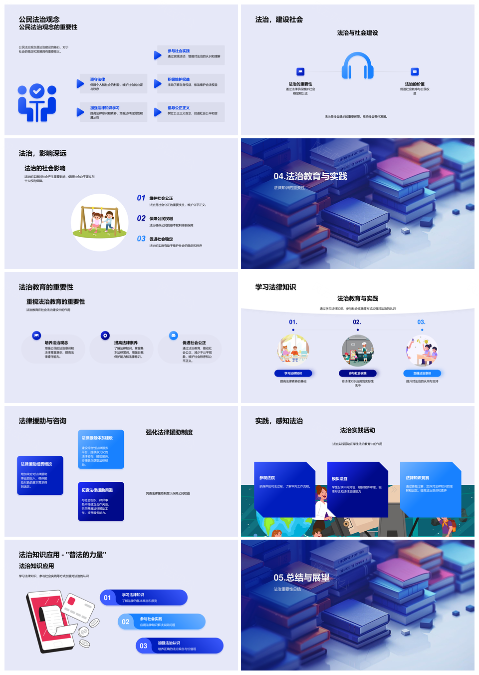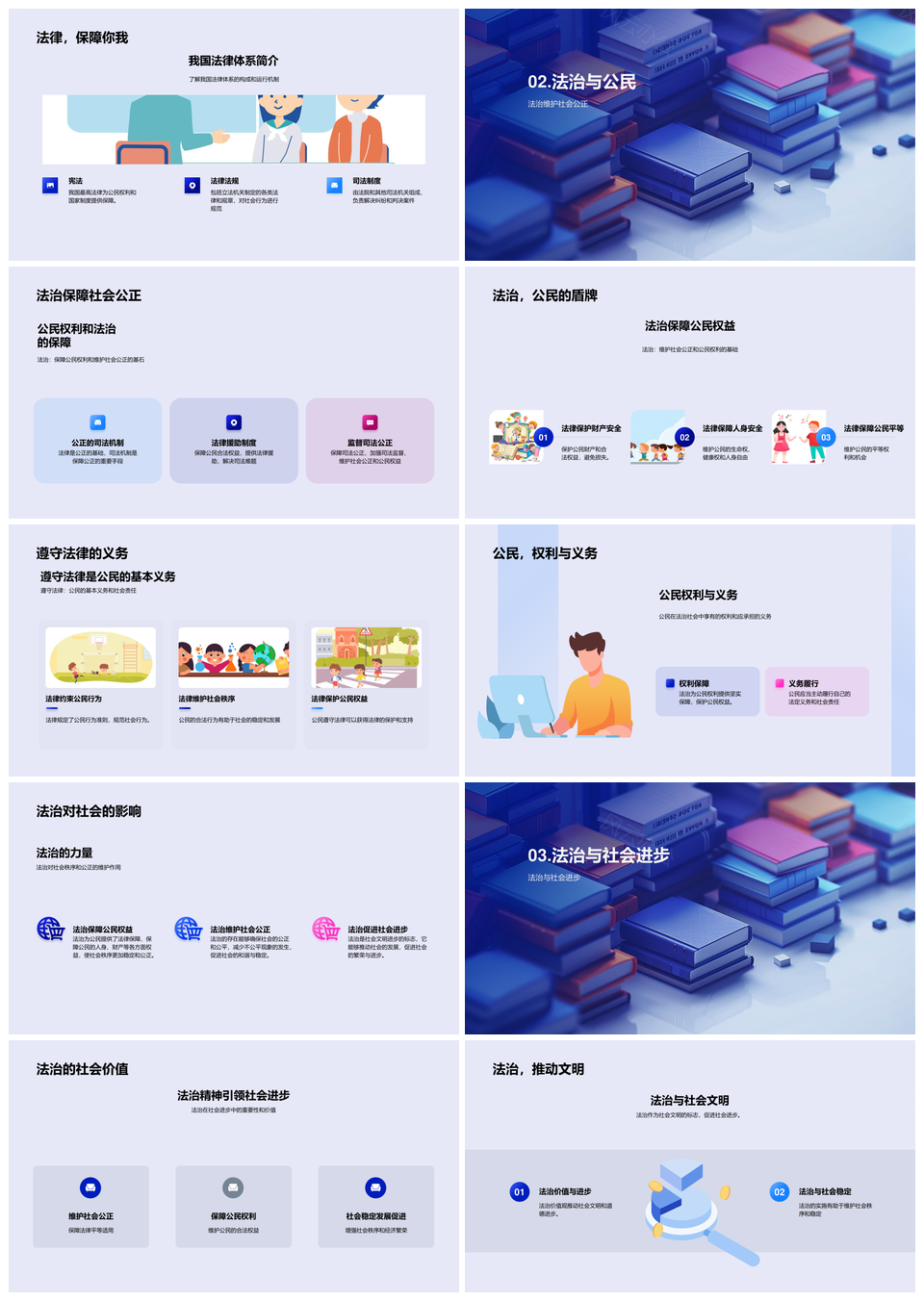 2025法治社会公正法律体系公民权利教育现状PPT模板推荐