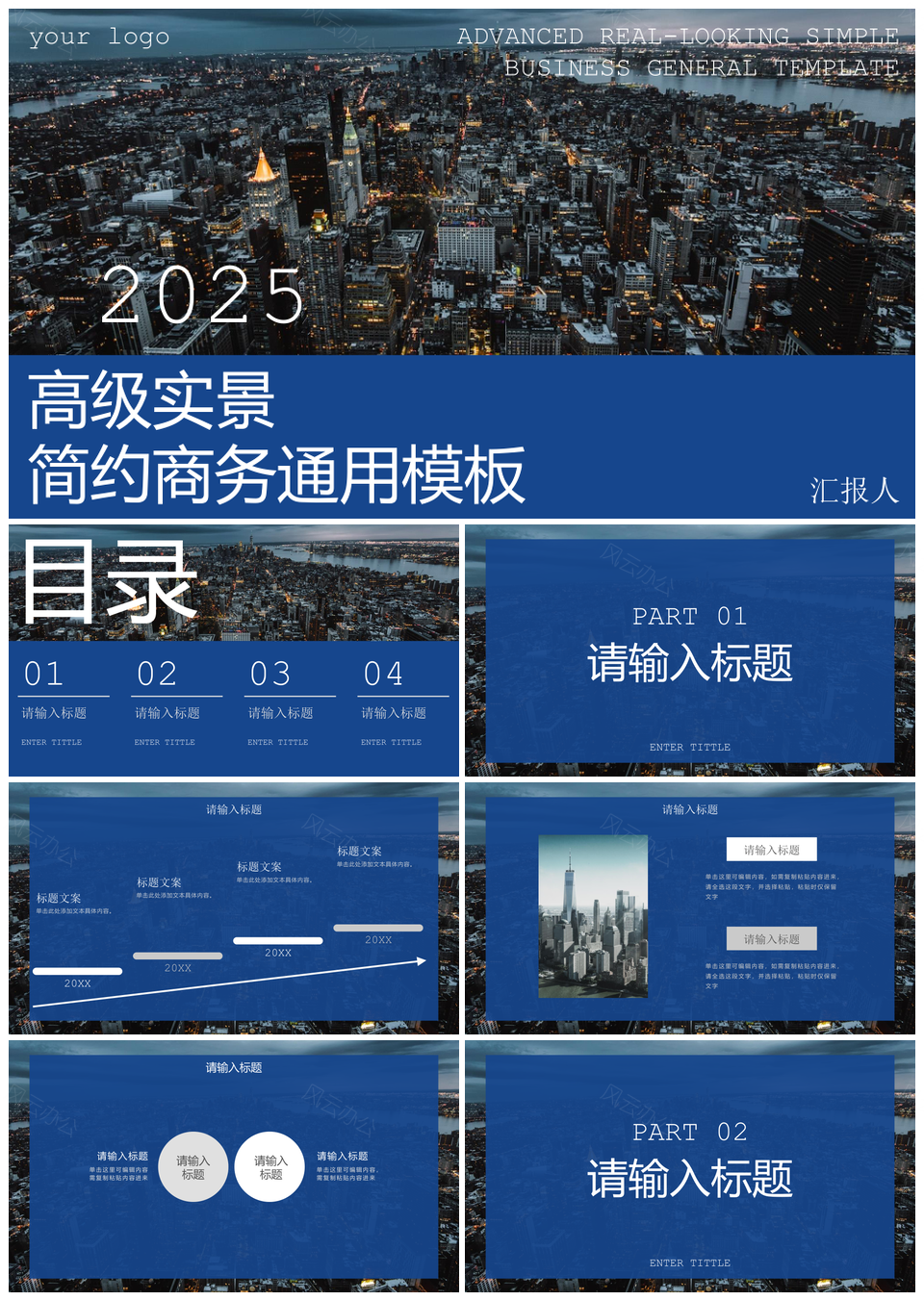 风云办公提供的2025蓝色简约商务高级实景通用PPT模板,下载格式为pptx,一共19页,作品中文字及图均可以修改和编辑,图片更改请在作品中右键图片并更换,文字修改请直接点击文字进行修改。