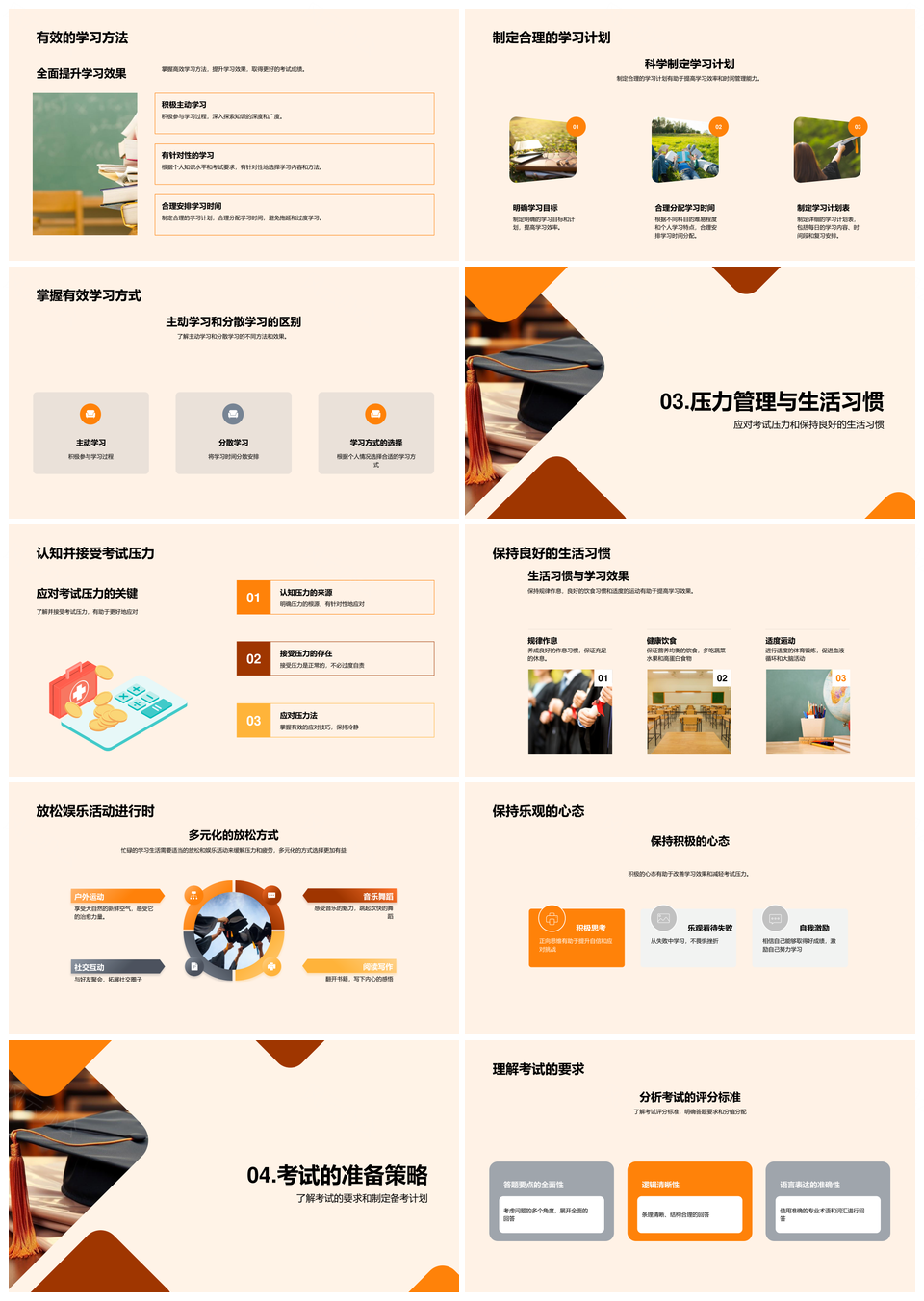 这是一张考试成功赢考场有效学习避免抱佛脚毕业PPT模板,包含考试、成功、考场、有效学习、避免、抱佛脚、毕业等主题内容,也可用作考试成功有效学习、考试成功避免抱佛脚、考试成功考场有效、成功考场有效学习、考场有效学习避免、有效学习避免抱佛脚、避免抱佛脚毕业、考试成功考场、考试成功有效、考试成功避免、考试成功毕业、成功考场有效、成功考场学习、考场有效学习、有效学习避免等PPT场景使用。 风云办公提供的考试成功赢考场有效学习避免抱佛脚毕业PPT模板,下载格式为pptx,一共24页,作品中文字及图均可以修改和编辑,图片更改请在作品中右键图片并更换,文字修改请直接点击文字进行修改。