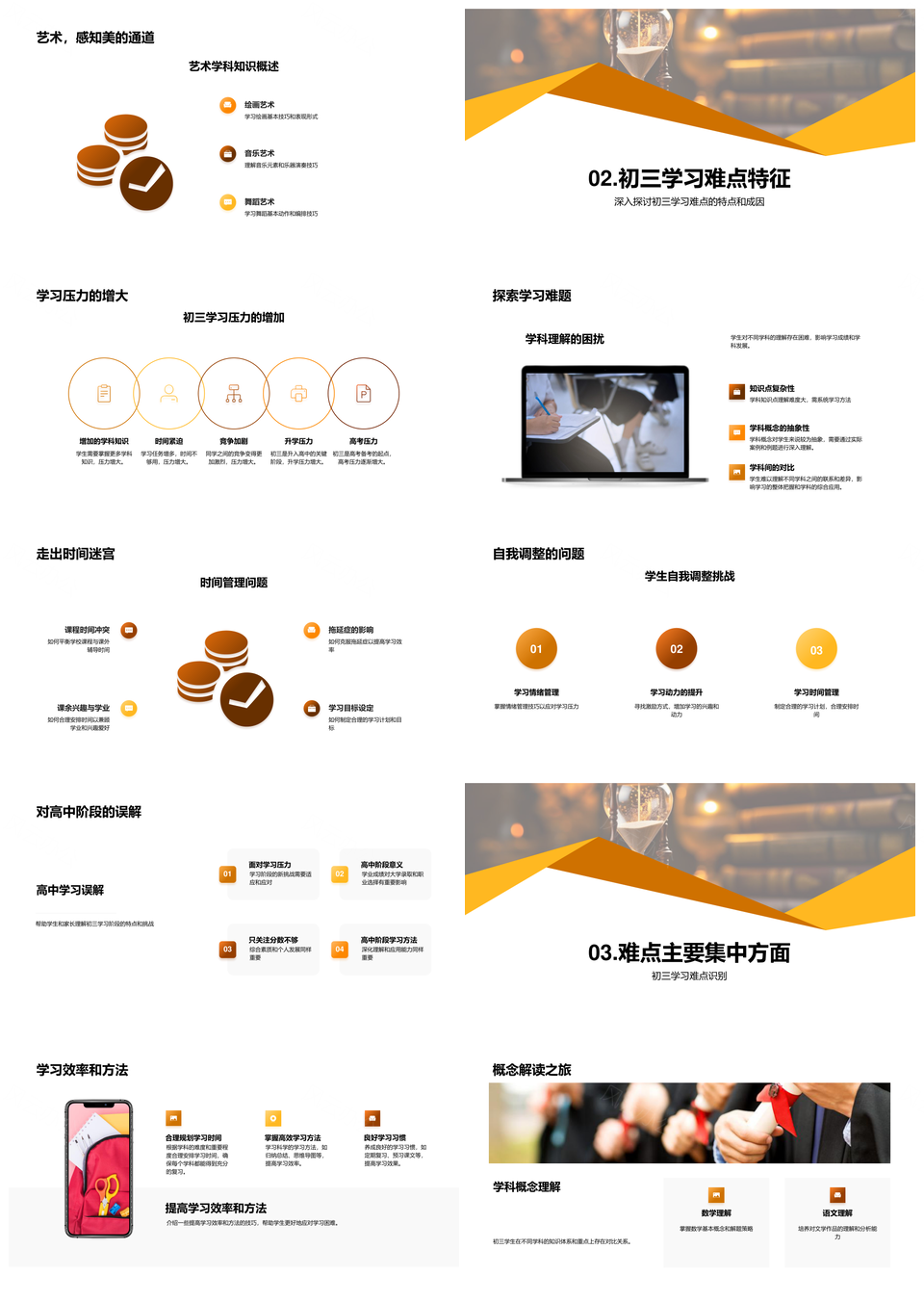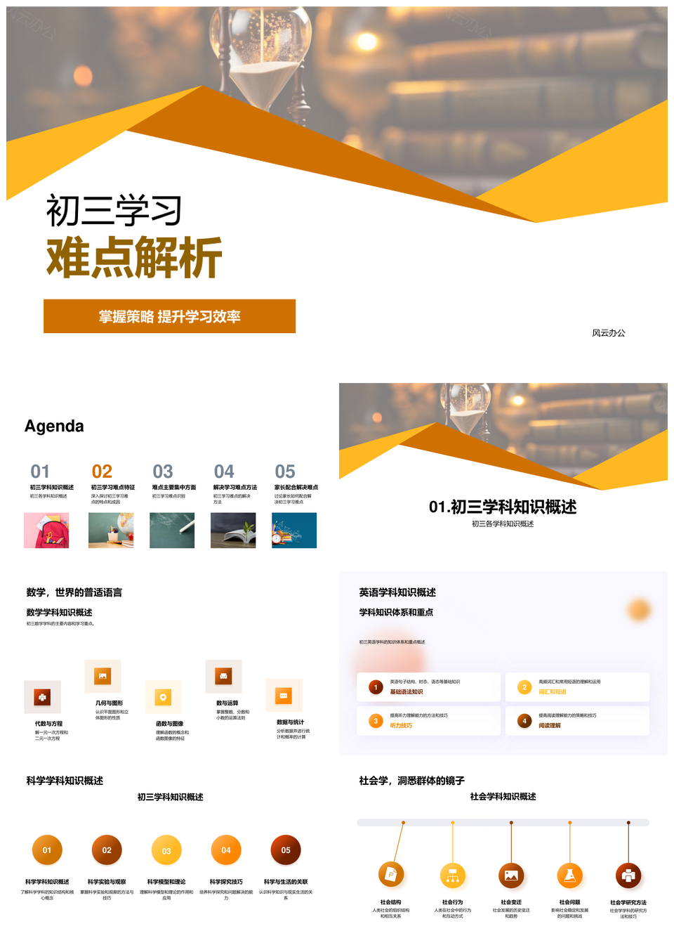 这是一张初三学习难点高效策略时间学科备考家长助力PPT模板,包含初三、学习难点、高效策略、时间、学科、备考、家长助力等主题内容,也可用作初三学习高效策略、学习难点高效策略、学科备考高效策略、家长助力备考时间、初三学习难点、高效策略备考、学科备考时间、家长助力备考、时间学科备考、难点高效策略、学科备考、高效策略、家长助力、学习难点、备考时间等PPT场景使用。 风云办公提供的初三学习难点高效策略时间学科备考家长助力PPT模板,下载格式为pptx,一共33页,作品中文字及图均可以修改和编辑,图片更改请在作品中右键图片并更换,文字修改请直接点击文字进行修改。