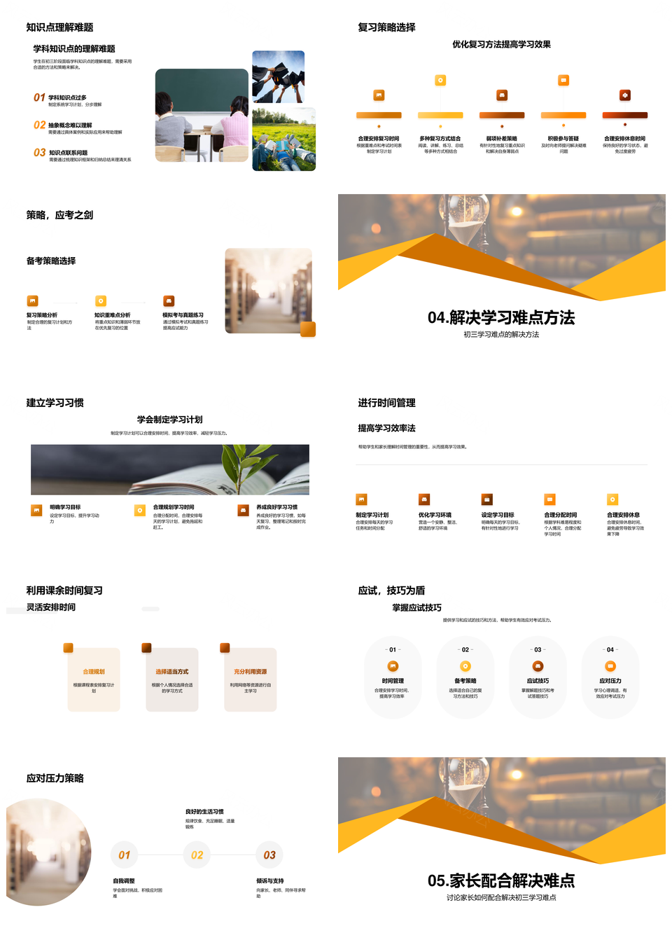 初三学习难点高效策略时间学科备考家长助力PPT模板推荐