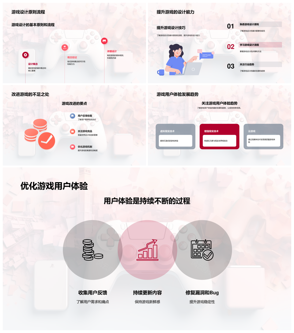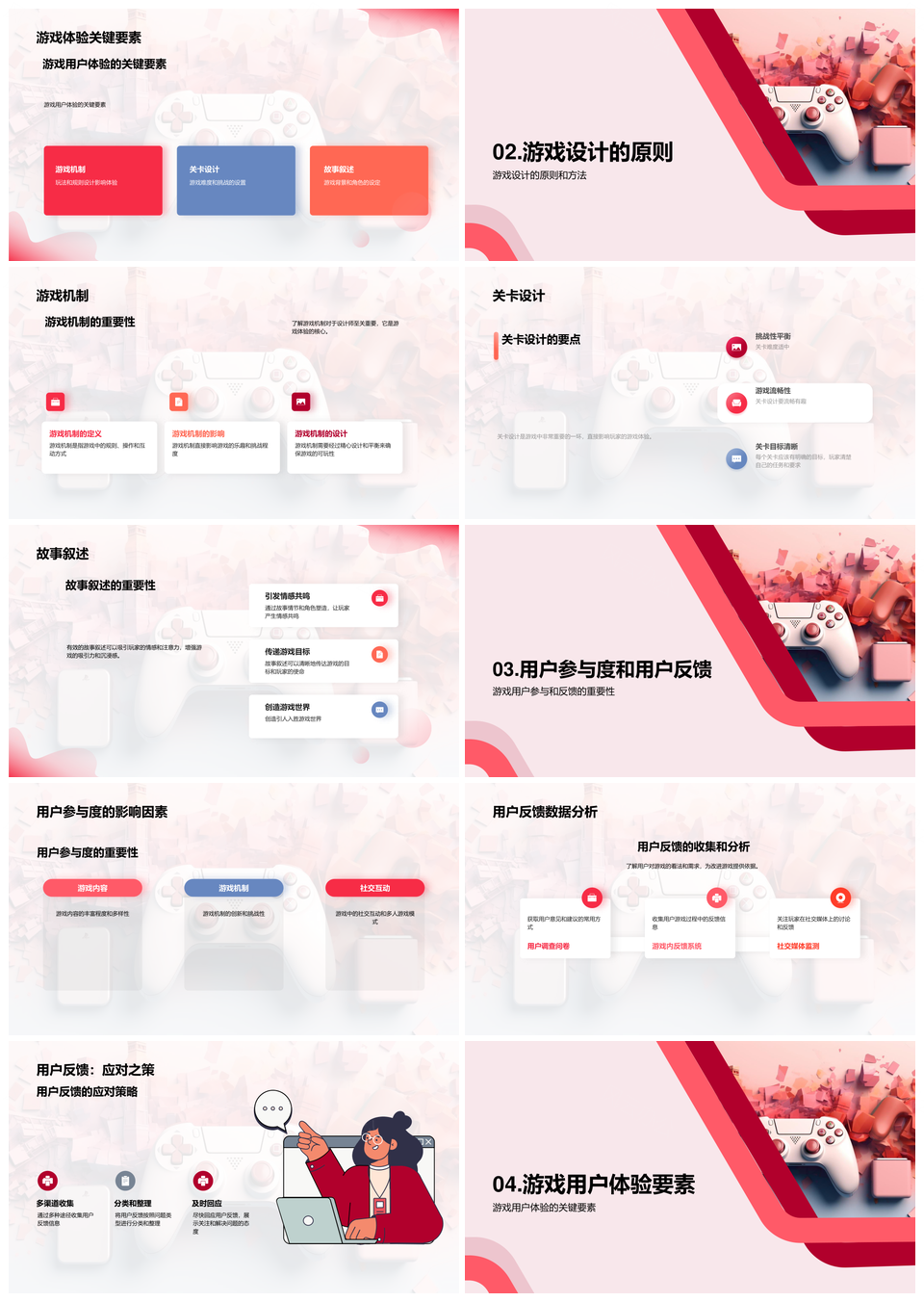 游戏设计用户体验机制关卡操作叙事参与反馈手柄PPT模板推荐