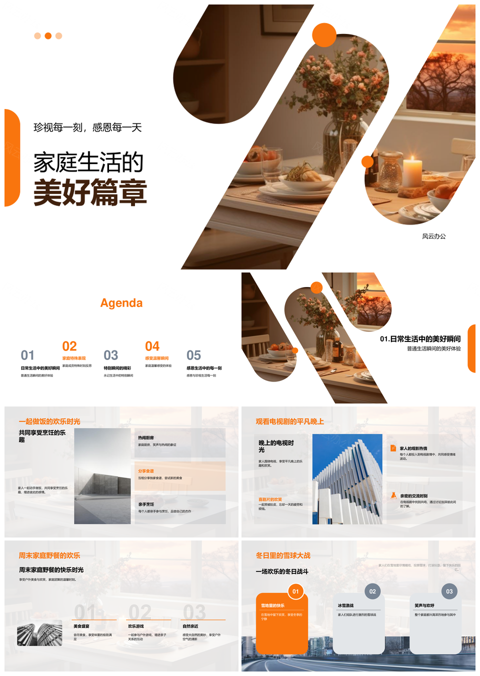 风云办公提供的家庭相册珍存聚餐感恩美好瞬间PPT模板,下载格式为pptx,一共28页,作品中文字及图均可以修改和编辑,图片更改请在作品中右键图片并更换,文字修改请直接点击文字进行修改。