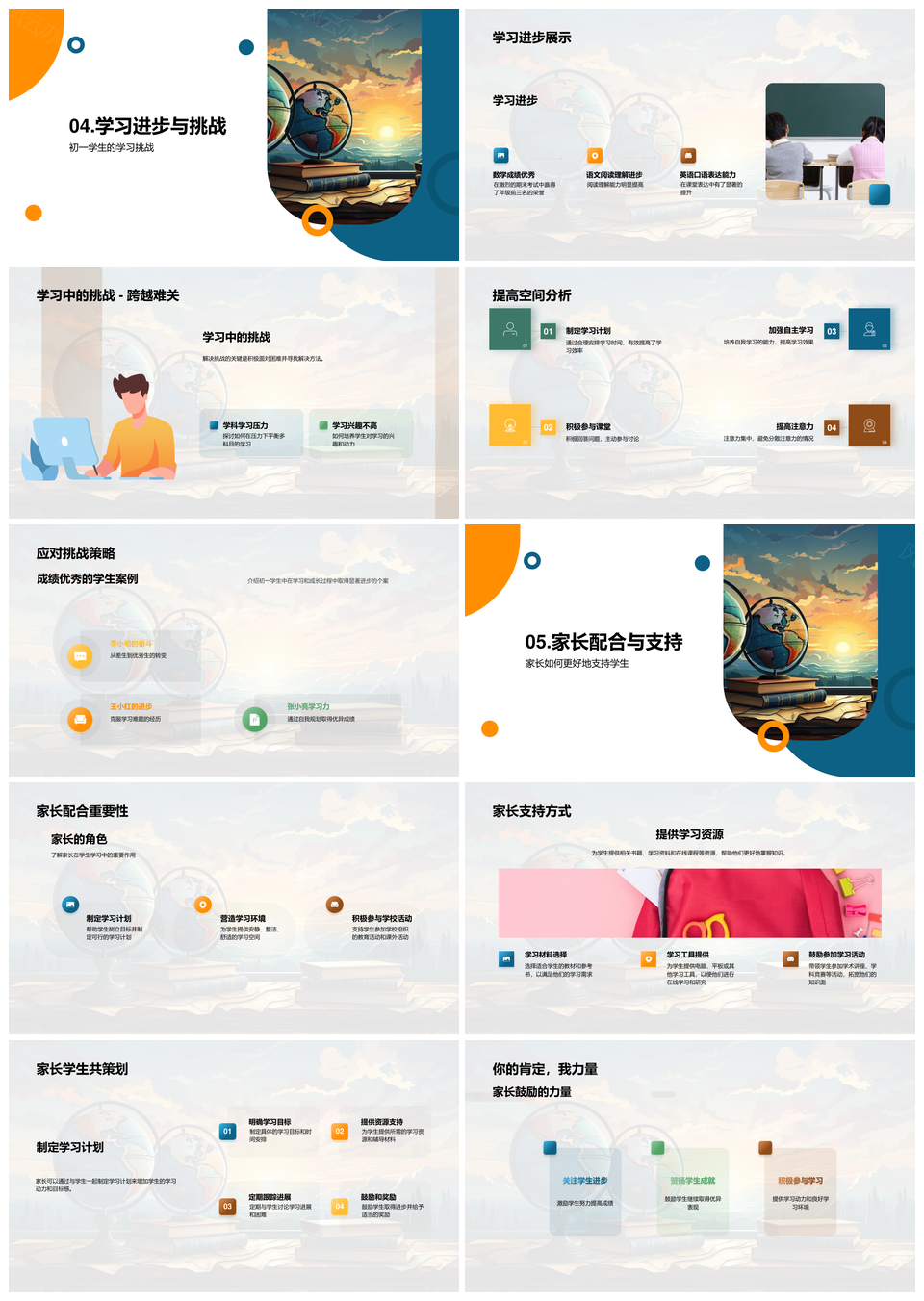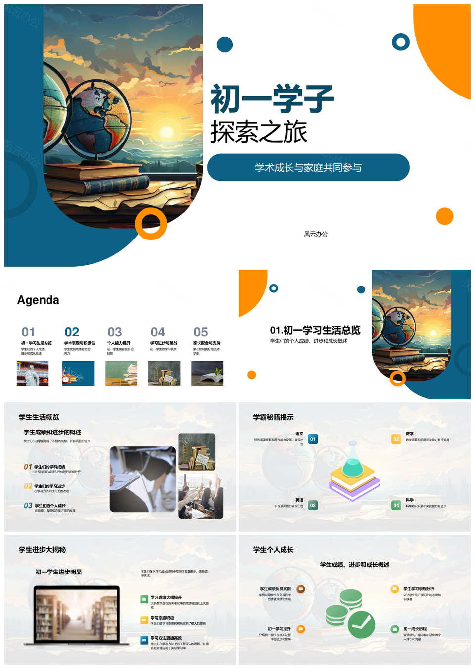风云办公提供的初一学子家校共育学术成长汇报PPT模板,下载格式为pptx,一共28页,作品中文字及图均可以修改和编辑,图片更改请在作品中右键图片并更换,文字修改请直接点击文字进行修改。