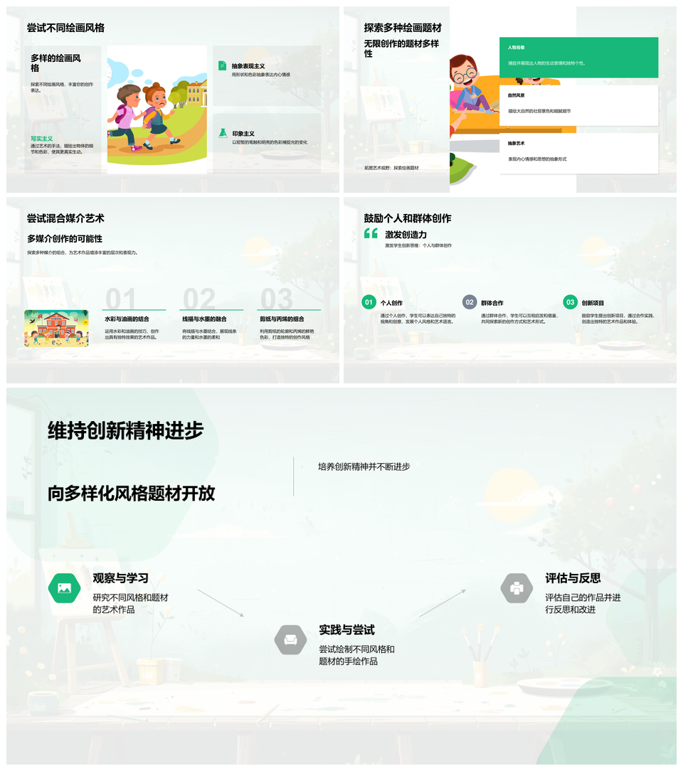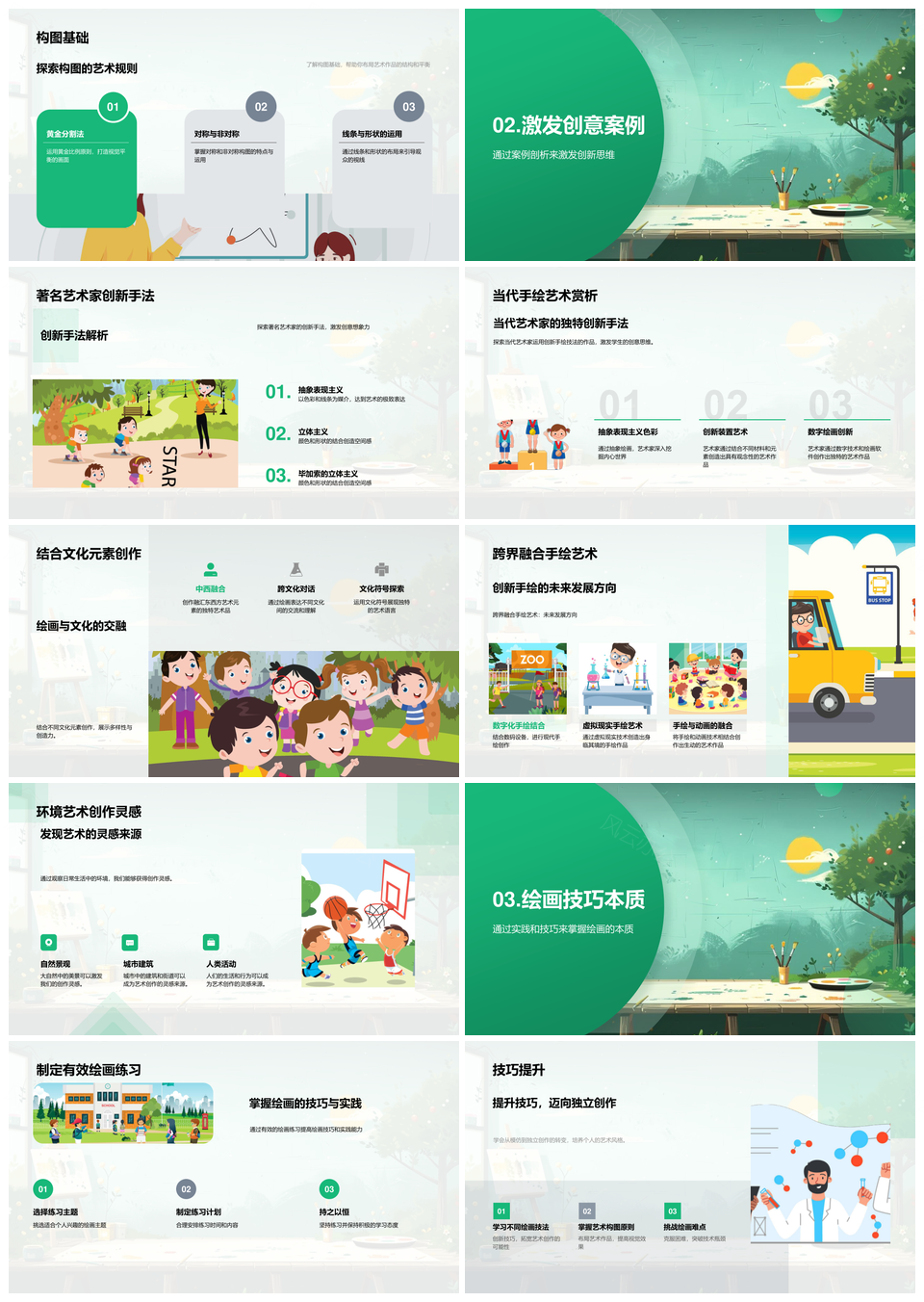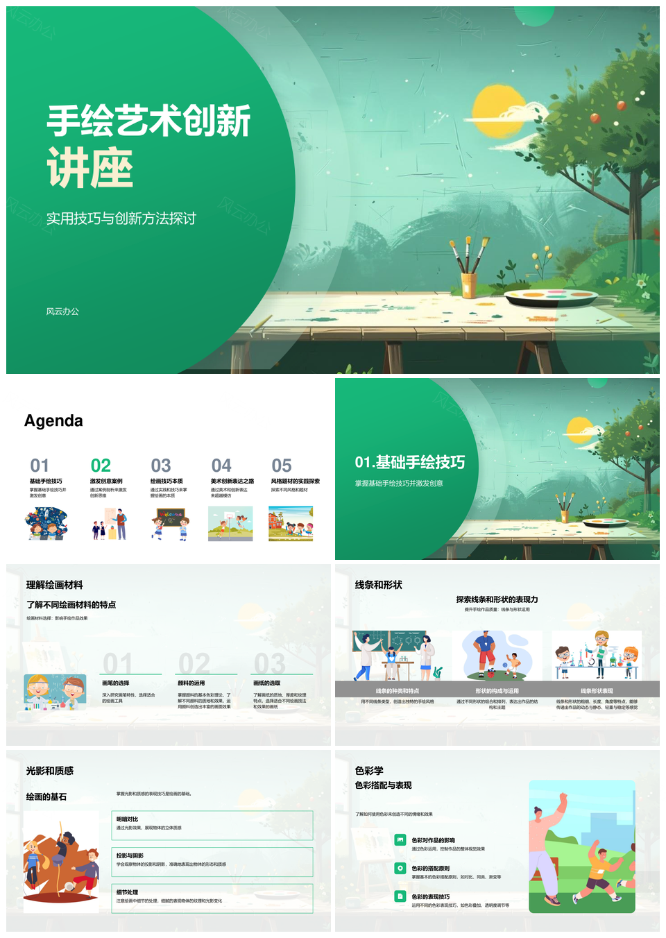 这是一张手绘艺术创新技法名家色彩构图文化解析PPT模板,包含手绘艺术、创新技法、名家、色彩、构图、文化解析等主题内容,也可用作手绘艺术创新技法、艺术创新技法名家、创新技法名家色彩、技法名家色彩构图、名家色彩构图文化、色彩构图文化解析、手绘艺术色彩构图、技法名家色彩构图、名家色彩构图文化、手绘艺术创新技法、手绘艺术创新、艺术创新技法、创新技法名家、技法名家色彩、色彩构图文化等PPT场景使用。 风云办公提供的手绘艺术创新技法名家色彩构图文化解析PPT模板,下载格式为pptx,一共33页,作品中文字及图均可以修改和编辑,图片更改请在作品中右键图片并更换,文字修改请直接点击文字进行修改。