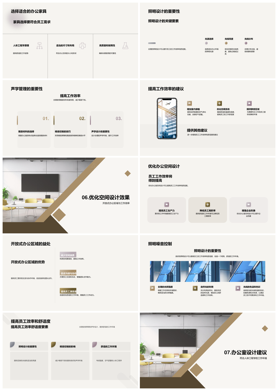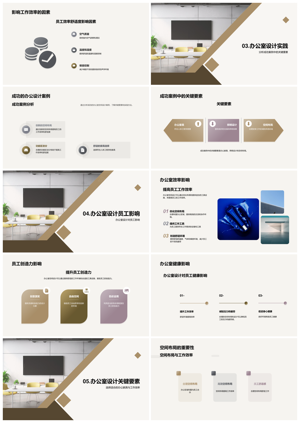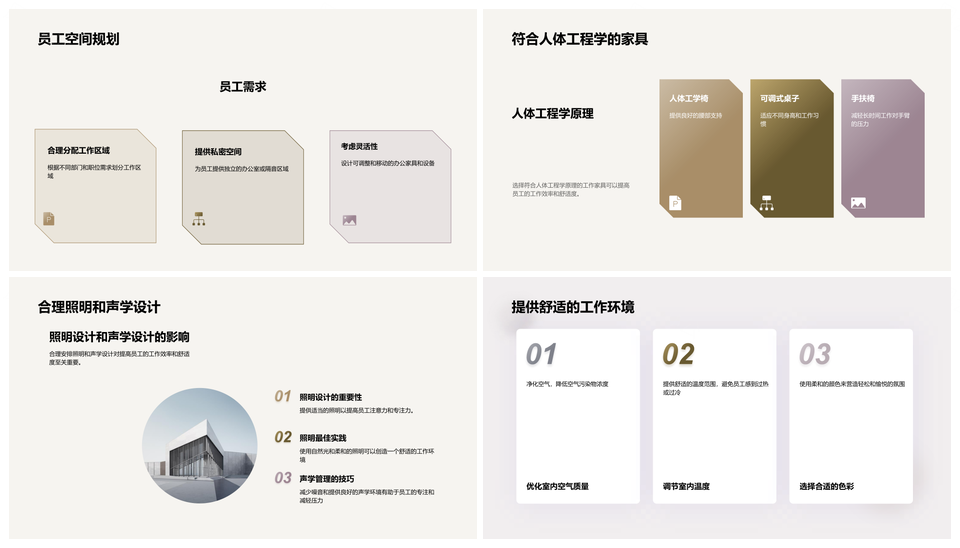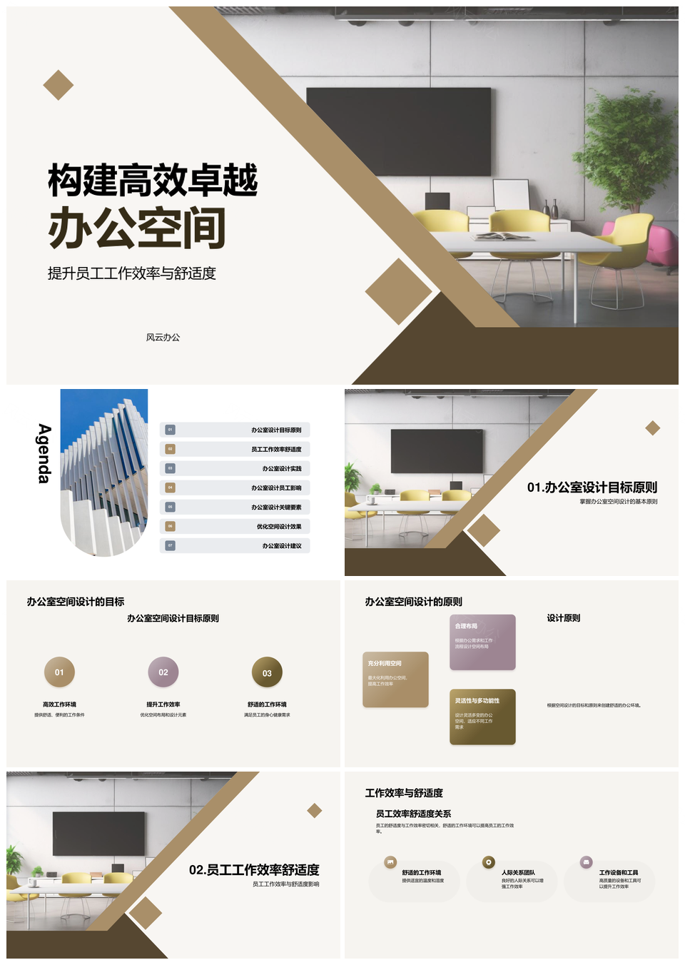 高效办公空间设计关键要素与员工舒适度原则PPT模板推荐