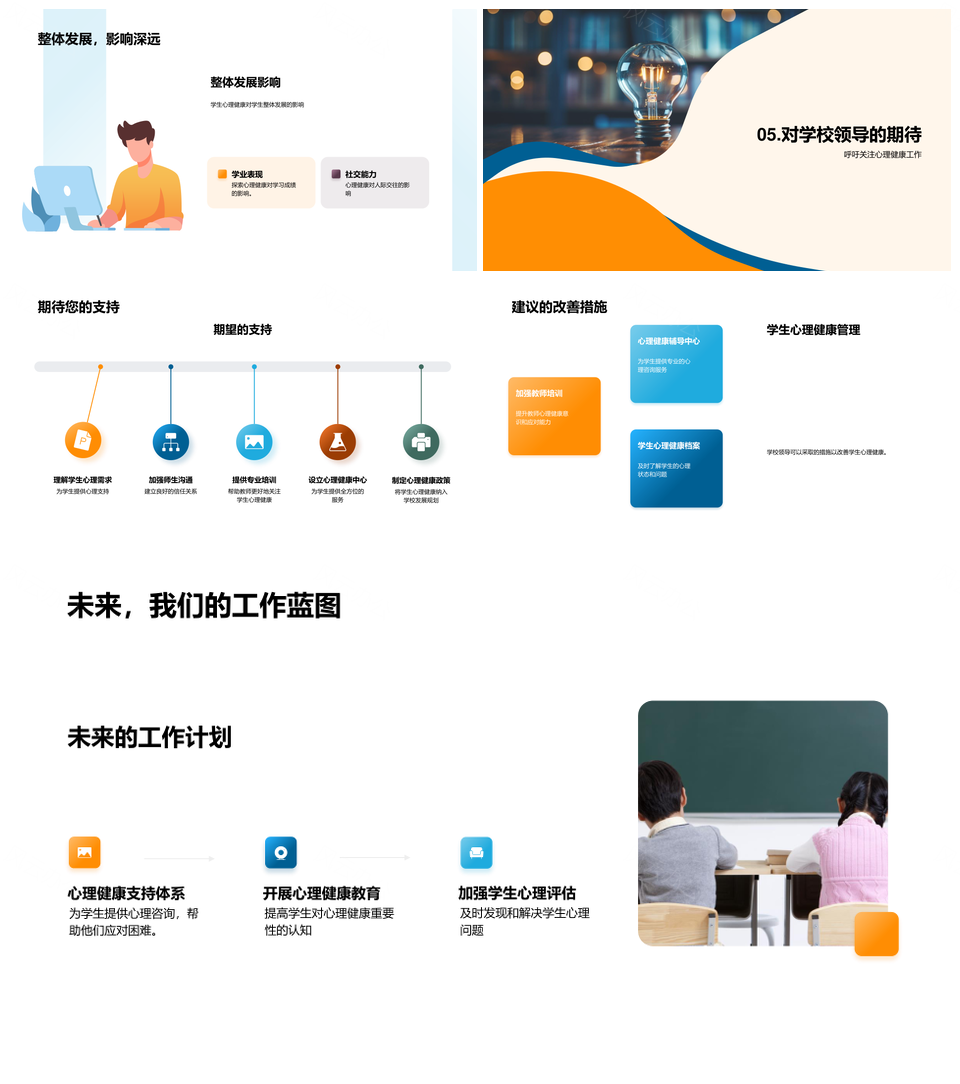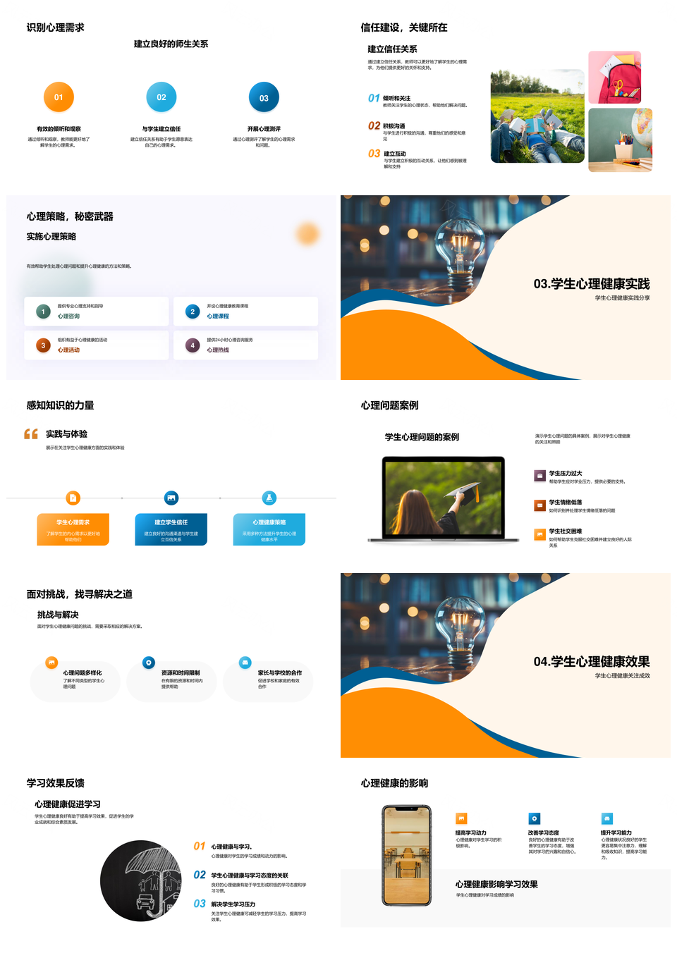 风云办公提供的教育界学生心理健康养护理论实践策略PPT模板,下载格式为pptx,一共23页,作品中文字及图均可以修改和编辑,图片更改请在作品中右键图片并更换,文字修改请直接点击文字进行修改。