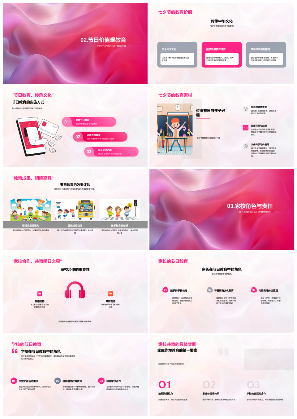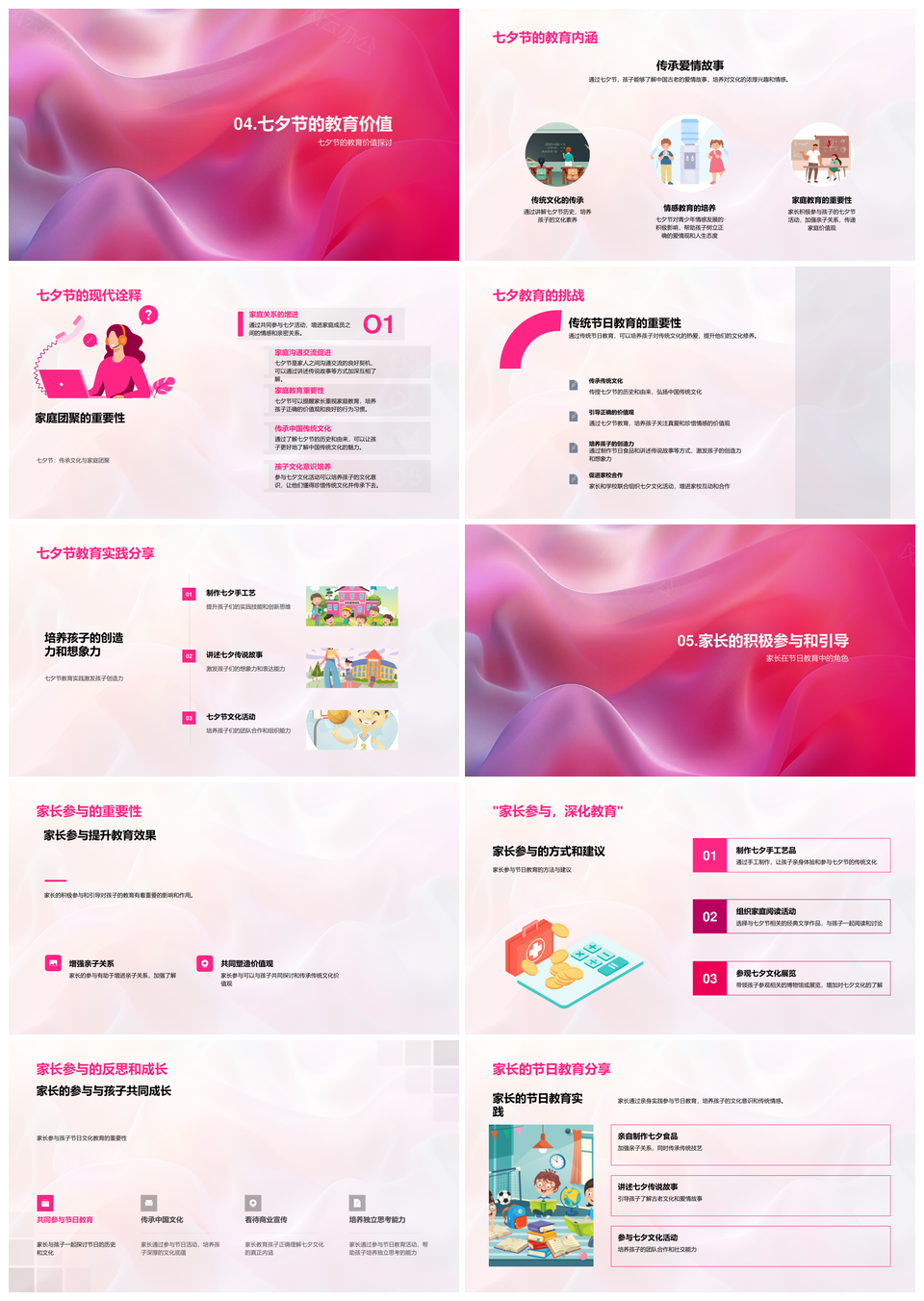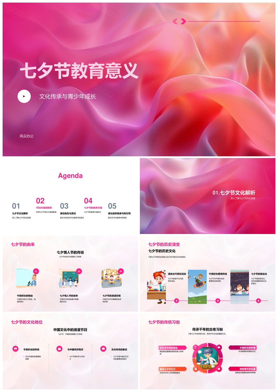 风云办公提供的七夕节传承文化习俗助力成长家校共育PPT模板,下载格式为pptx,一共28页,作品中文字及图均可以修改和编辑,图片更改请在作品中右键图片并更换,文字修改请直接点击文字进行修改。